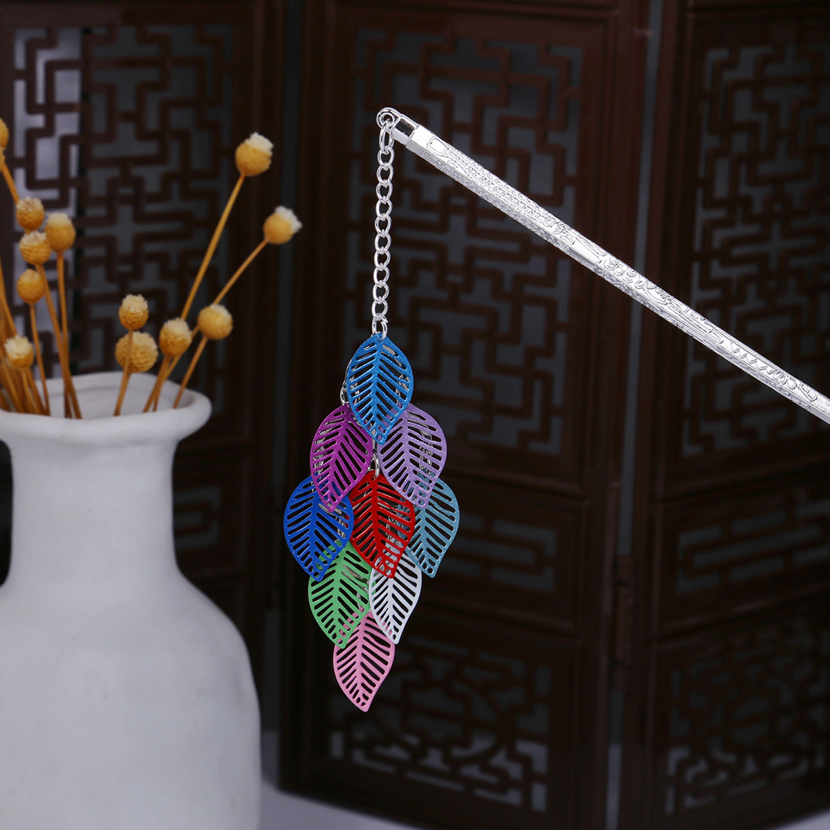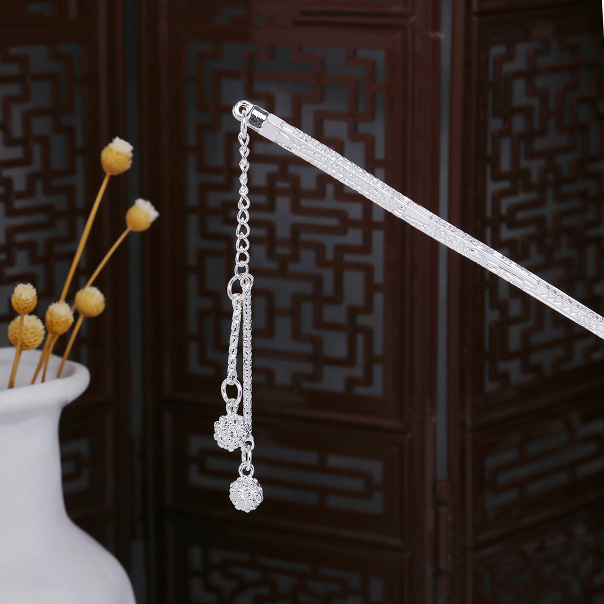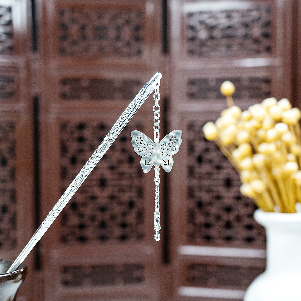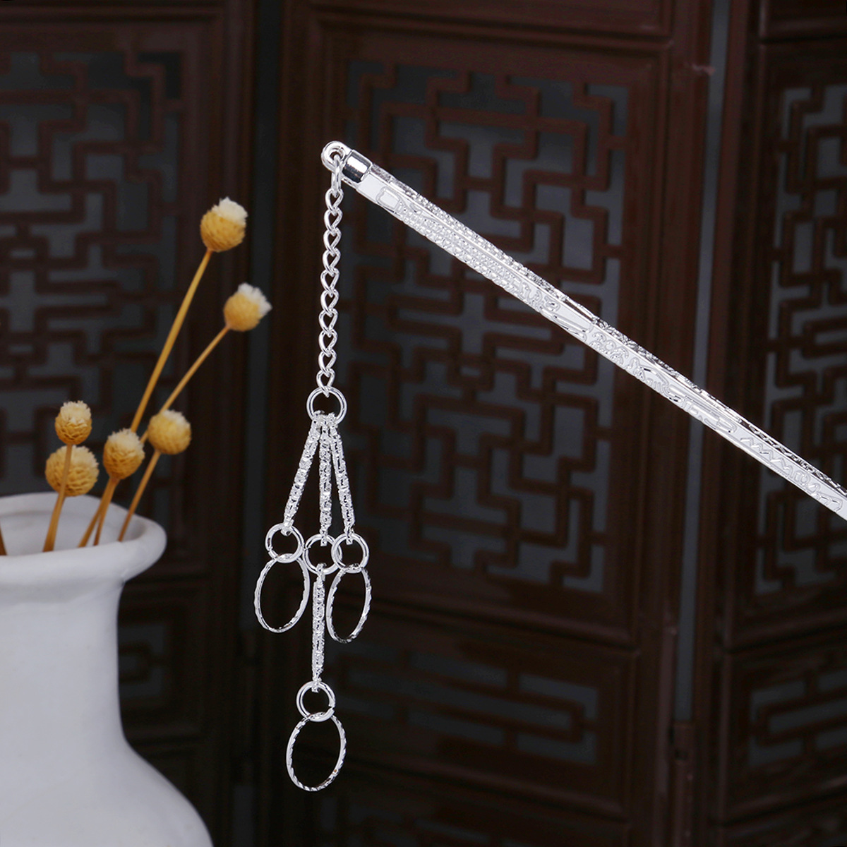新中式苗银几何镂空步摇流苏发簪 复古孔雀流苏古风旗袍汉服发饰