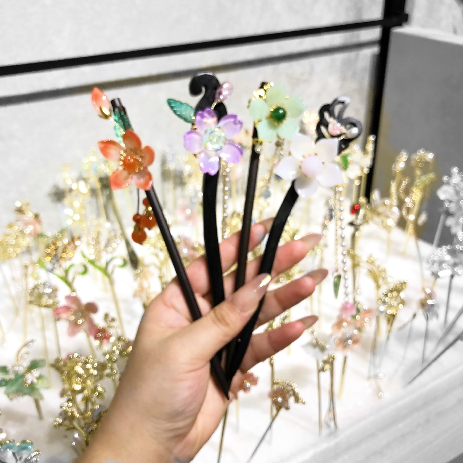 新中式古风气质花朵流苏吊坠款汉服旗袍发簪
