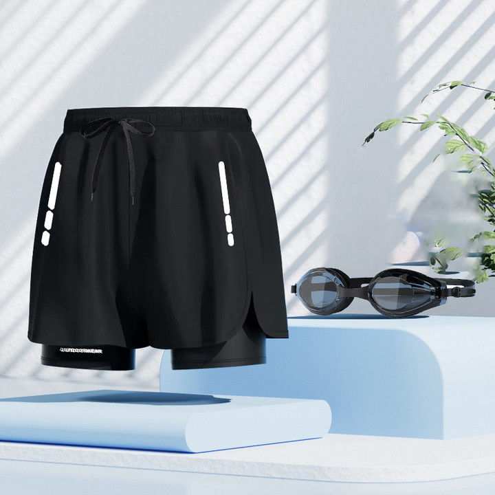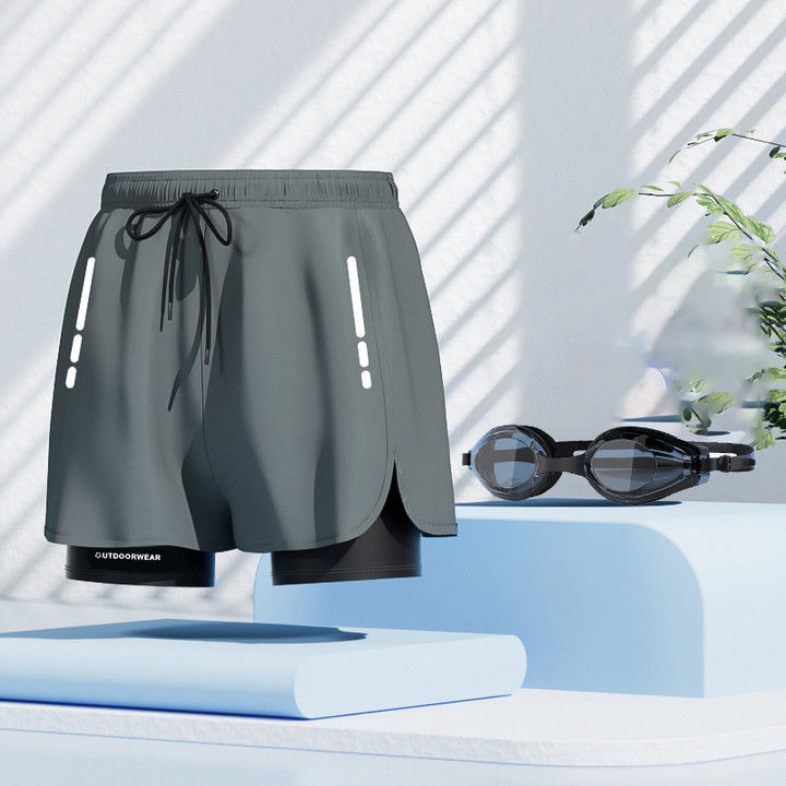 男式泳裤男士速干跑步练训跨境滩沙欧美女士双层防尴尬