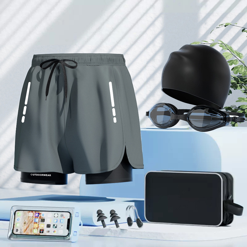 - 灰色裤子+泳镜+硅胶帽+泳包