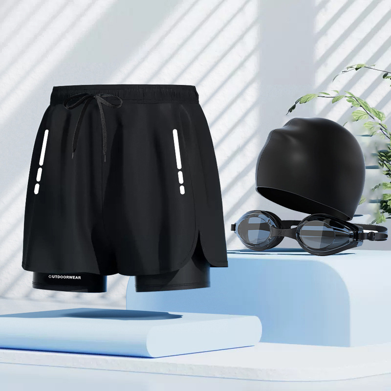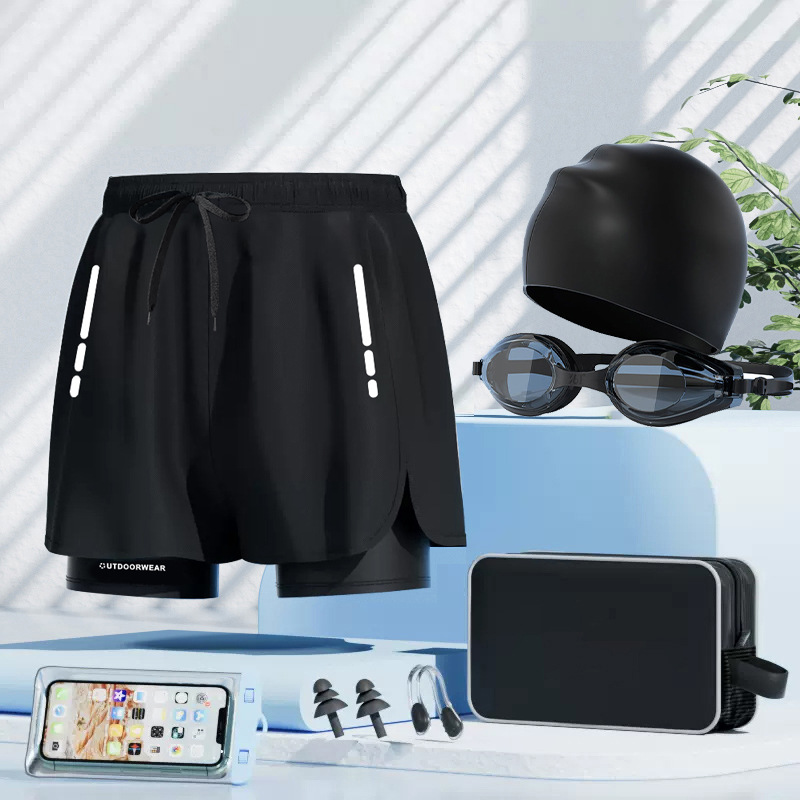 - 黑色裤子+泳镜+硅胶帽+泳包