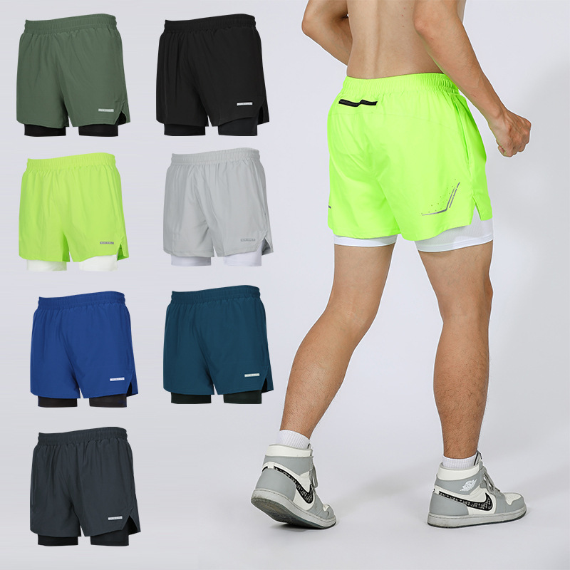 运动短裤男跑步马拉松田径宽松三分裤速干内衬防走光双层健身短裤