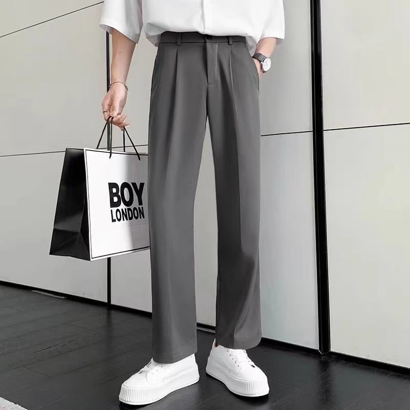 夏季黑色西装裤子商务男士薄款宽松直筒垂感西裤百搭阔腿休闲长裤