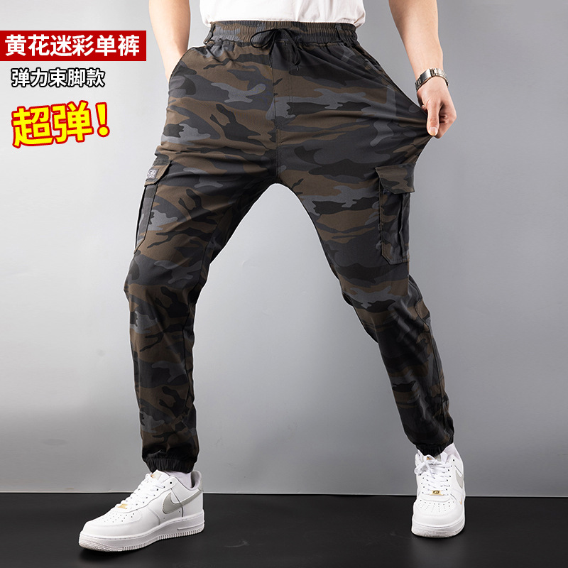 春夏季薄款工装裤男高弹工作裤多口袋纯色宽松束脚休闲高腰男裤子
