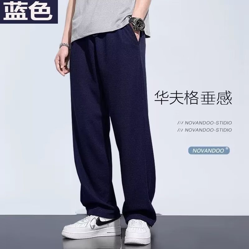 男潮流百搭大码潮牌宽松抽绳直筒运动裤休闲裤男