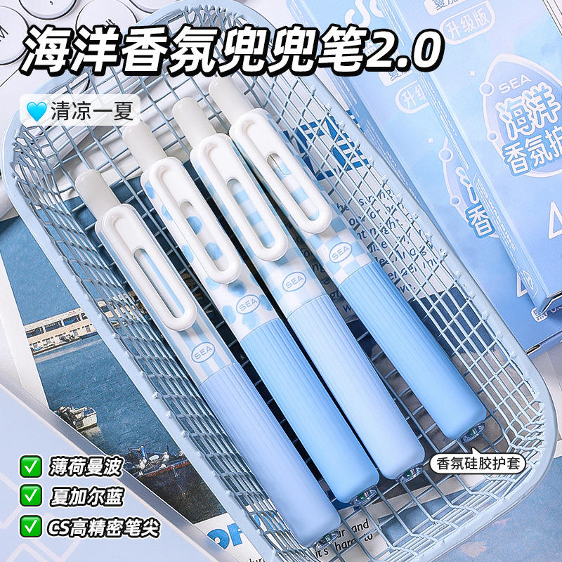 蓝果兜兜笔合集学生做笔记中性笔高颜值兜兜笔黑笔红笔按动笔速干