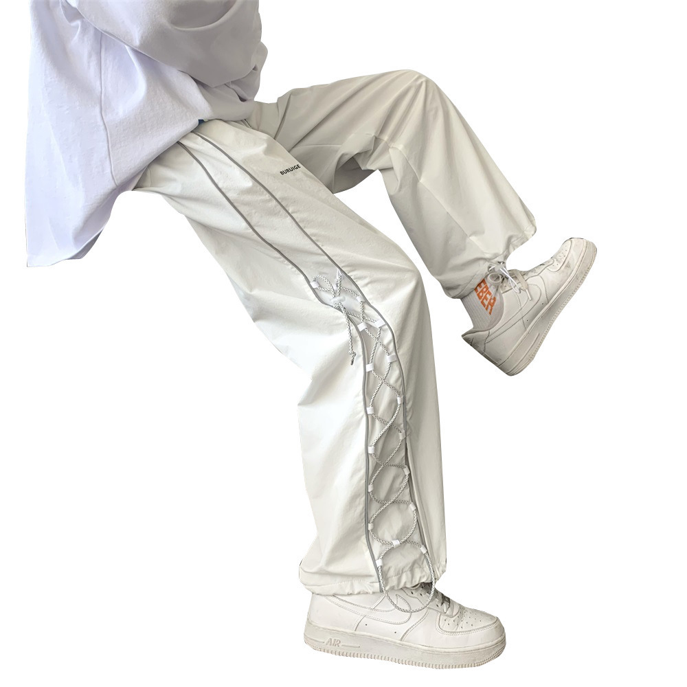 反光绳裤子男夏季薄款潮牌ins潮流嘻哈工装宽松高街休闲运动长裤