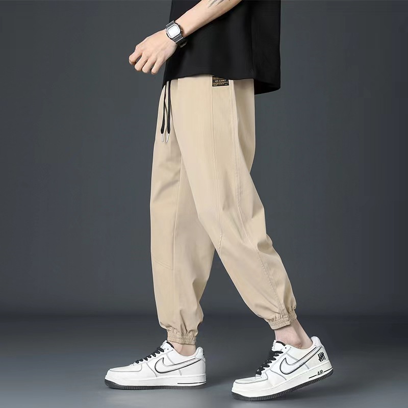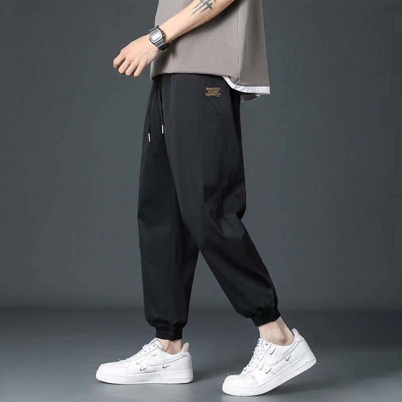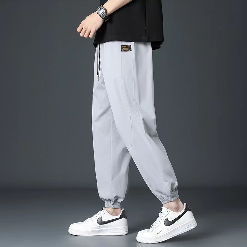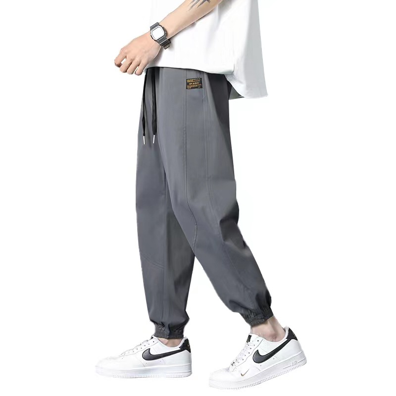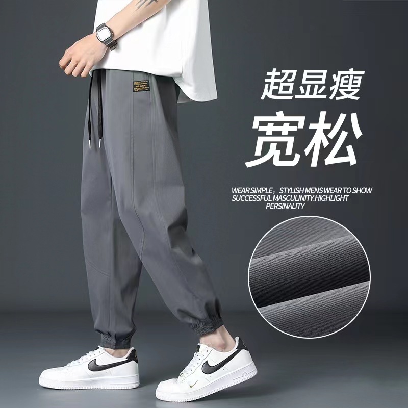 灰色卫裤男士夏季潮牌宽松春秋款束脚裤痞帅潮流冰丝裤休闲长裤子
