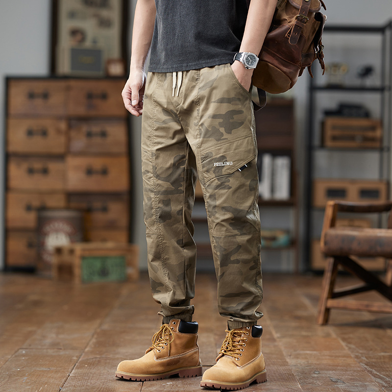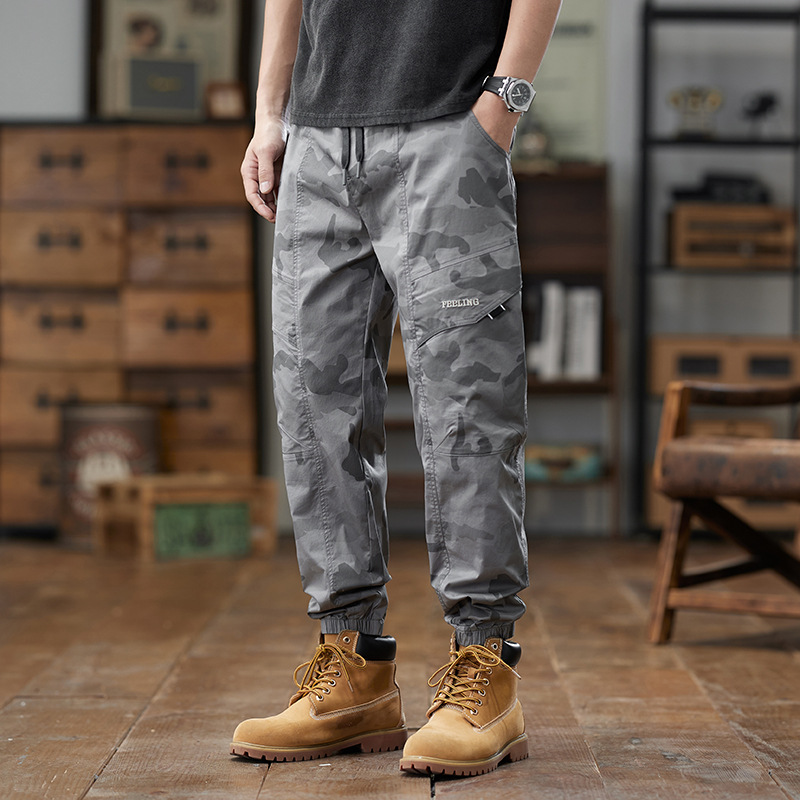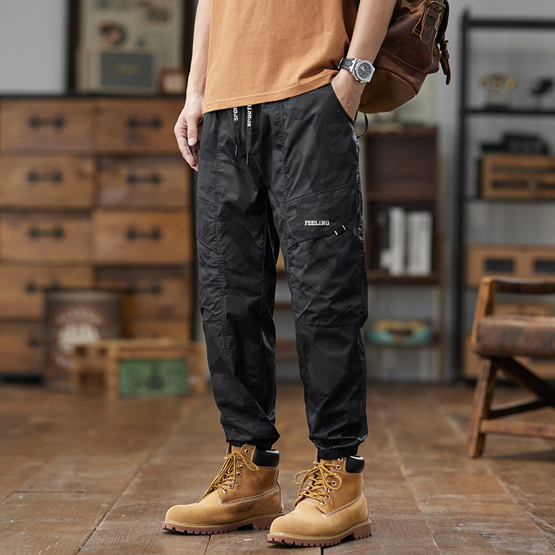 迷彩工装裤子男士新款春夏季薄款束脚运动裤宽松休闲潮牌男裤
