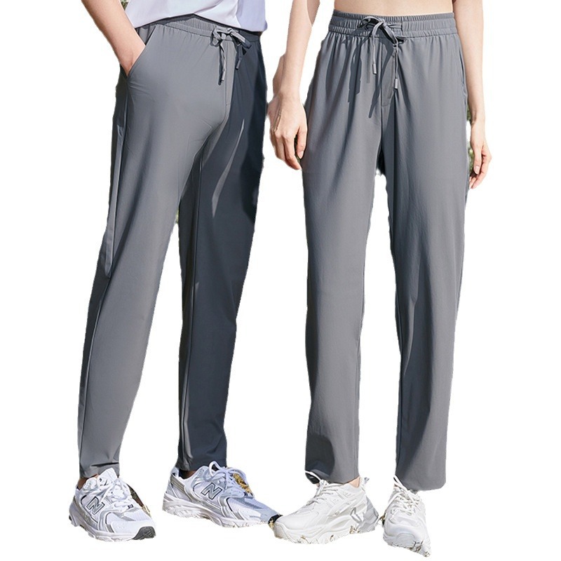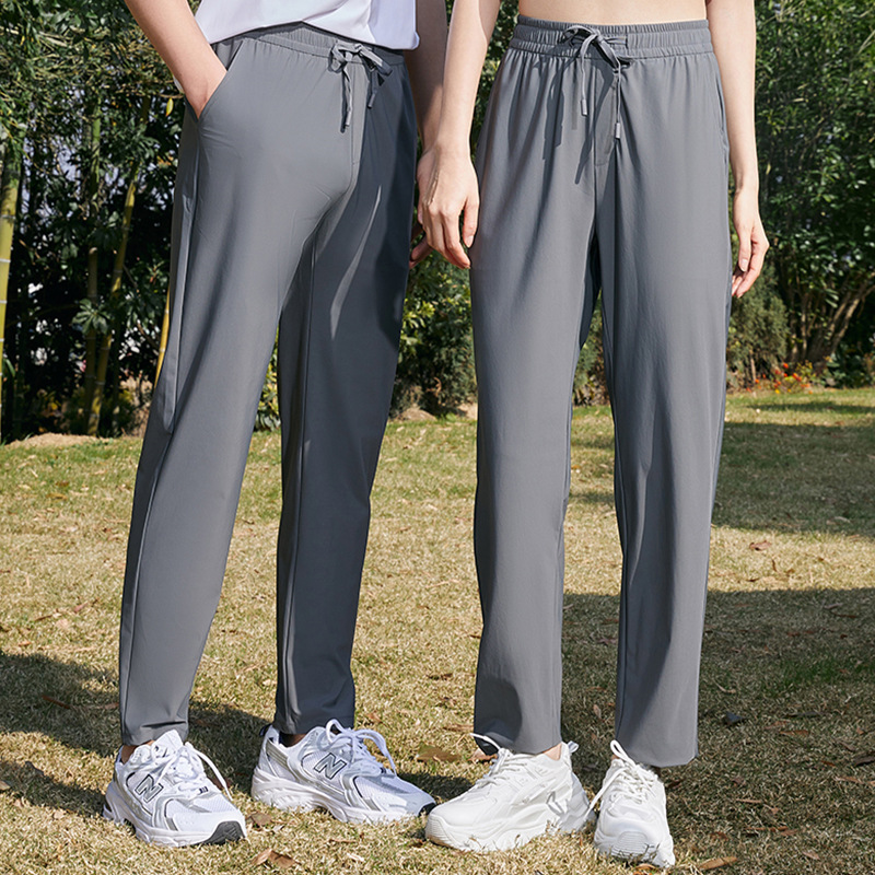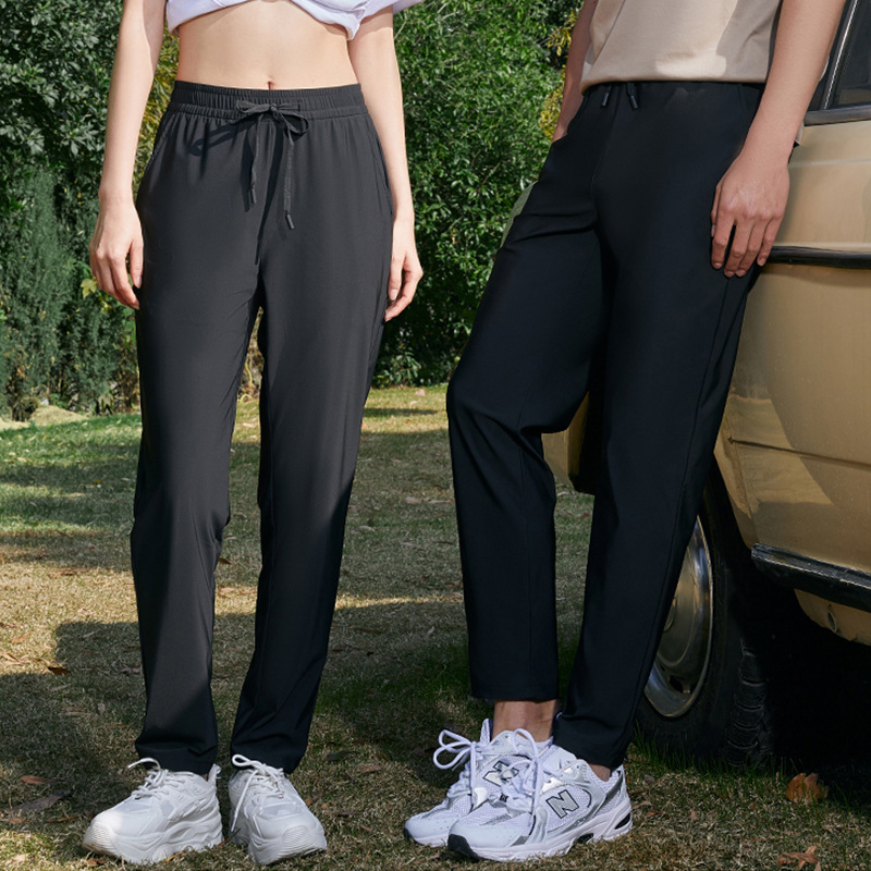 黑色冰丝裤春夏季速干裤休闲薄款长裤纯色直筒运动裤男女同款