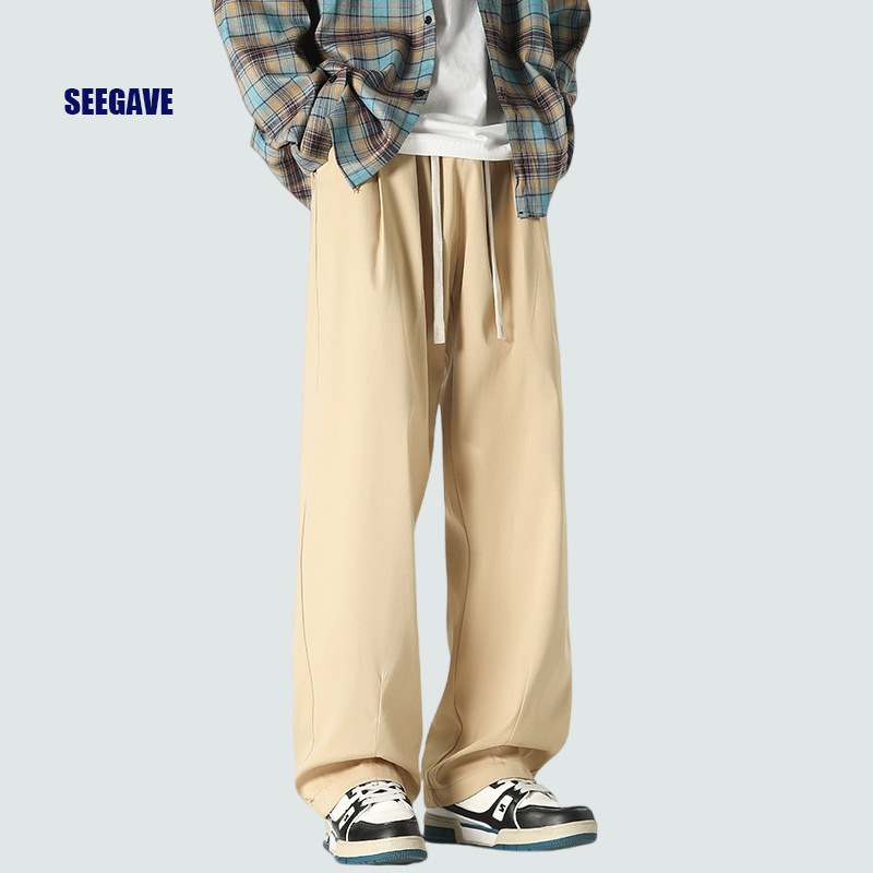 男装日系简约基础款纯色休闲裤男秋冬季保暖加绒加厚宽松直筒长裤