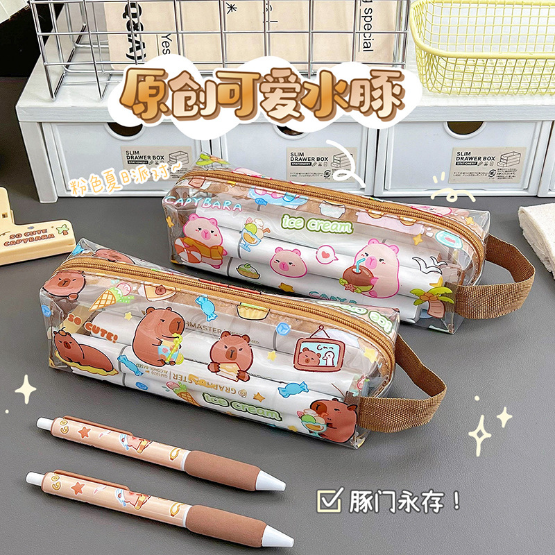 卡皮巴拉笔袋卡通透明大容量文具袋可爱学生高颜值铅笔盒铅笔袋