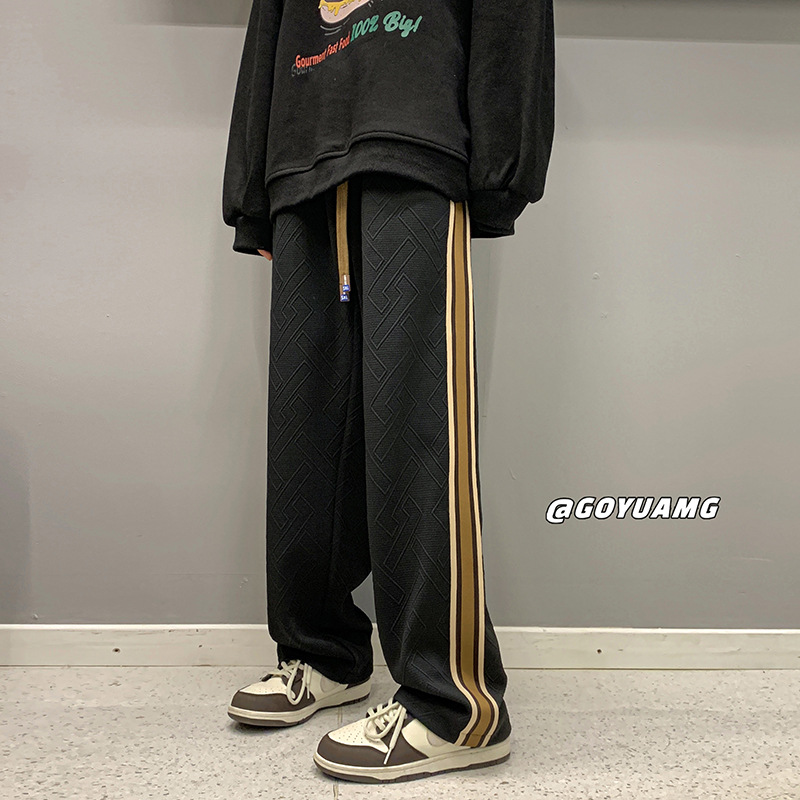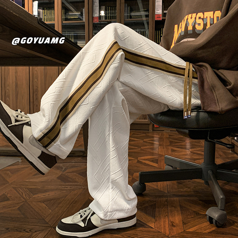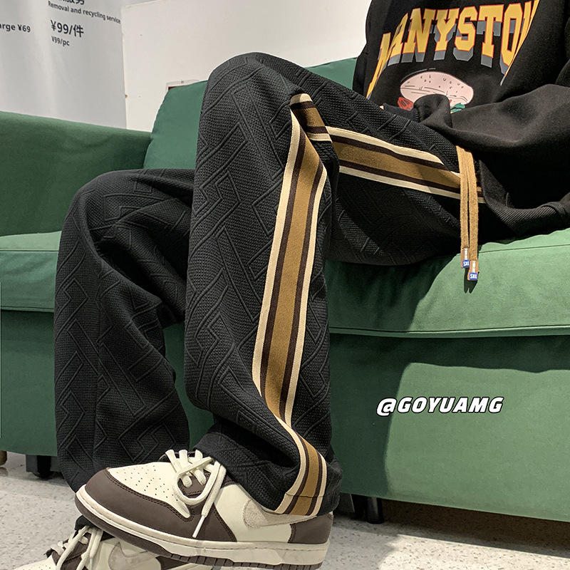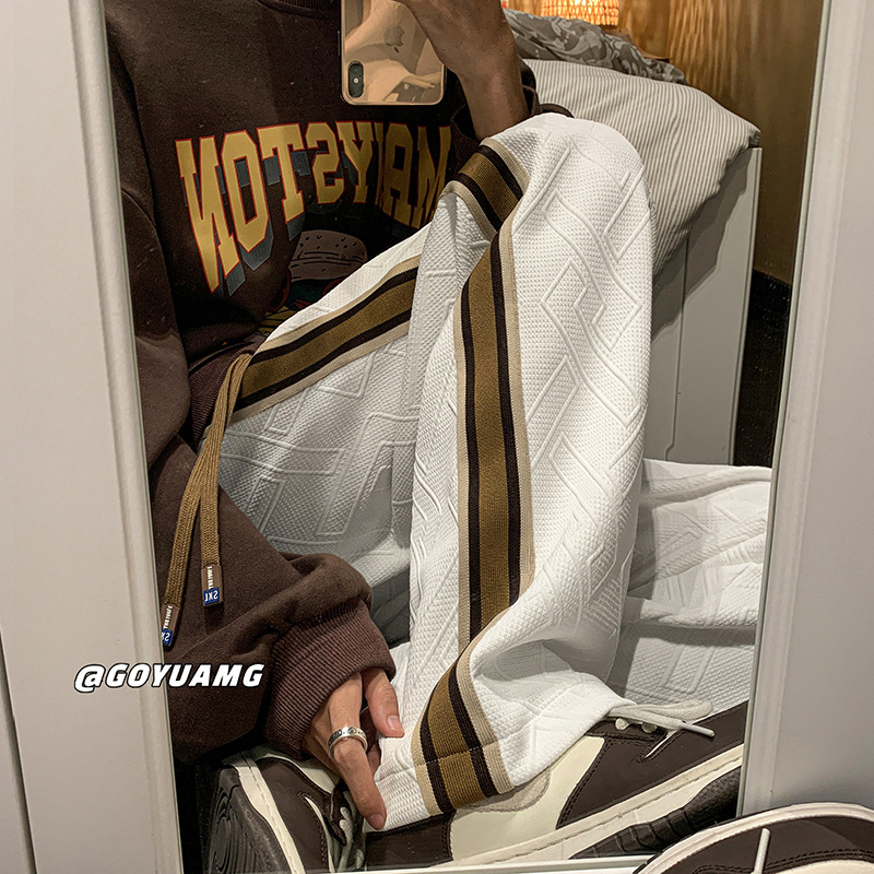 设计感条纹拼接裤子男女同款潮牌ins运动卫裤休闲宽松美式休闲裤