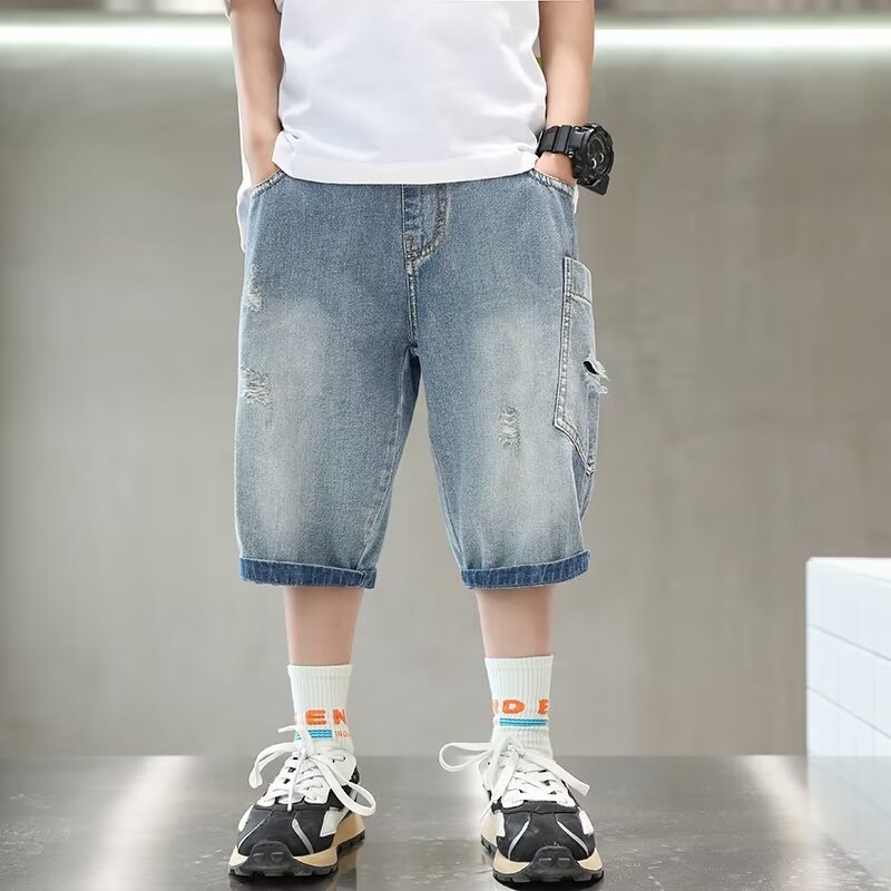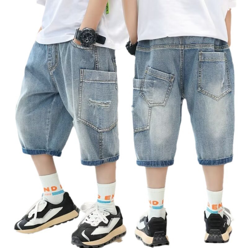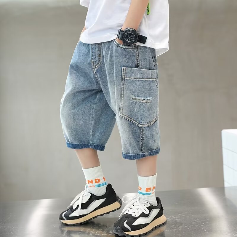 男童夏季潮流七分裤童装破洞牛仔裤新款时尚气质休闲中裤跨境