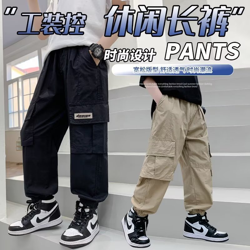 男童工装裤春秋季新款童装春季纯棉长裤中大童休闲洋气宽松裤