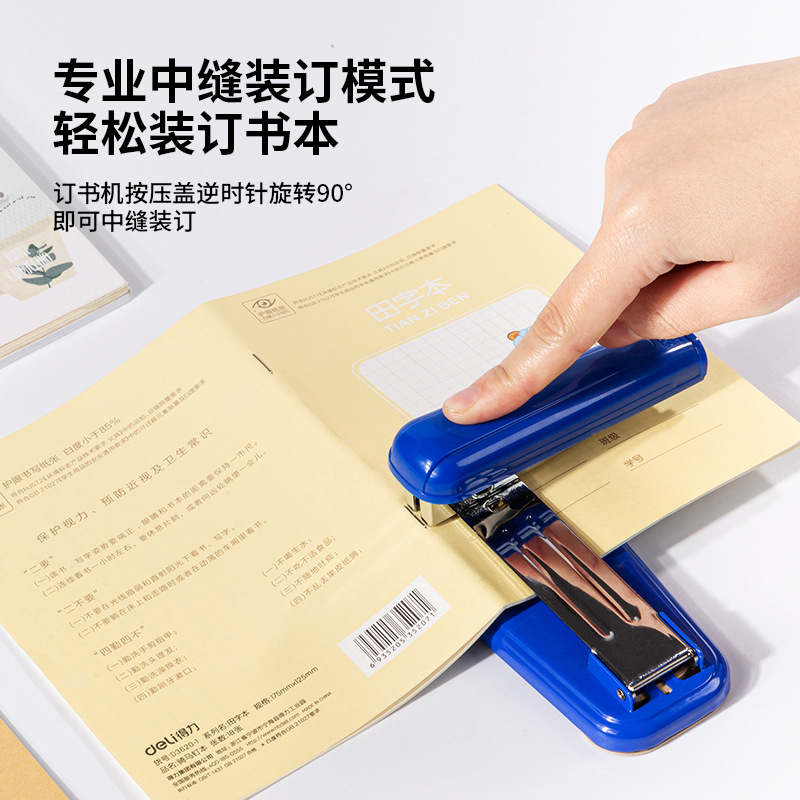 得力0828旋转订书机学生作业装订机办公文件订书器适配0012订书针