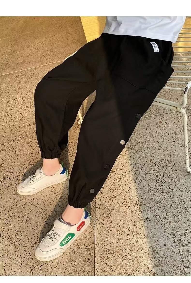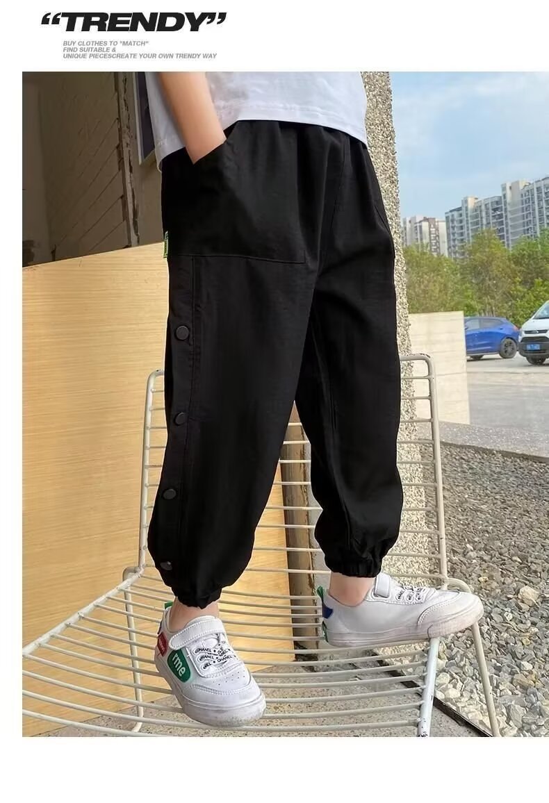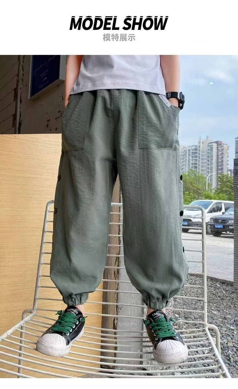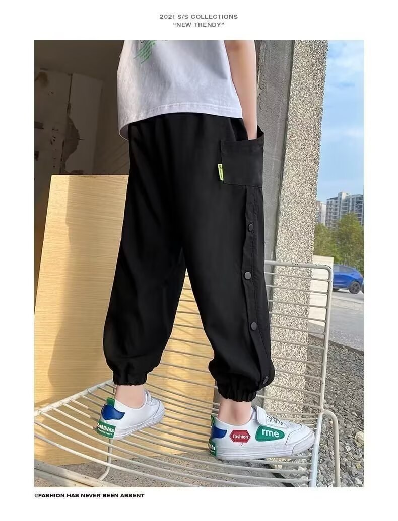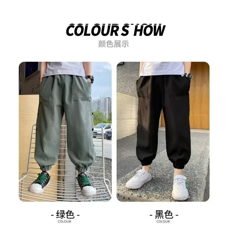 童装潮流韩版九分裤子夏季宽松直筒束脚工装裤男童ins冰丝速干裤