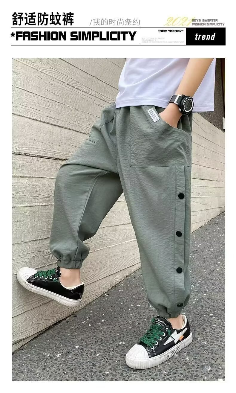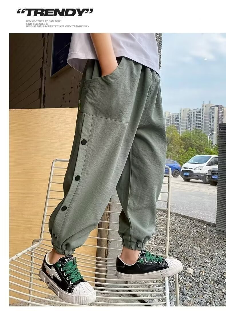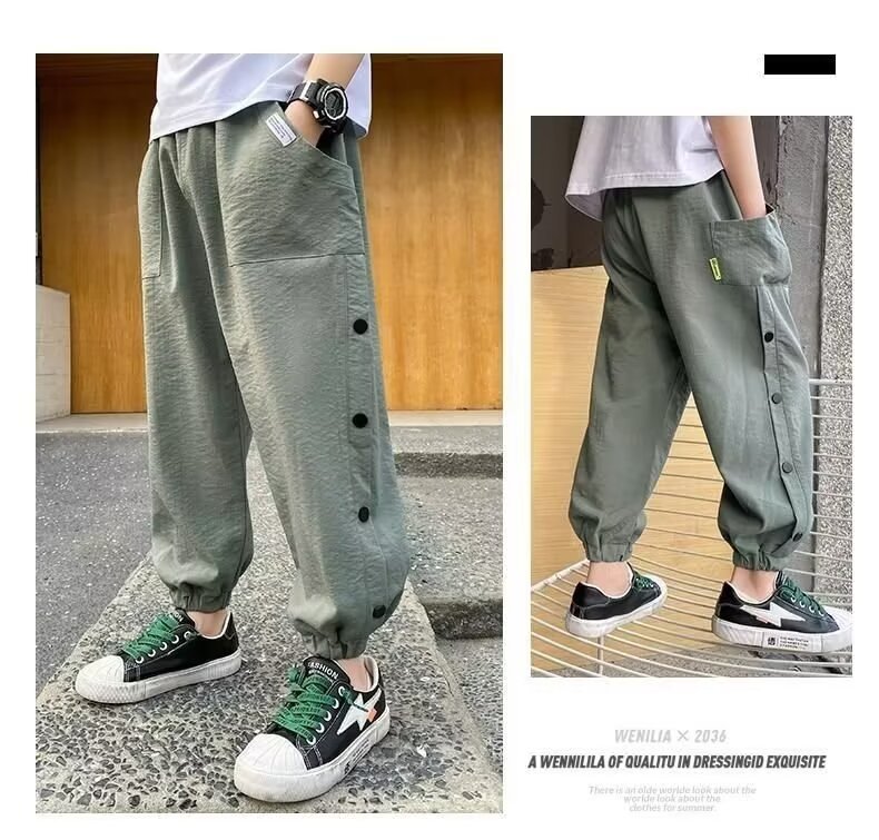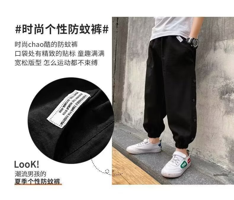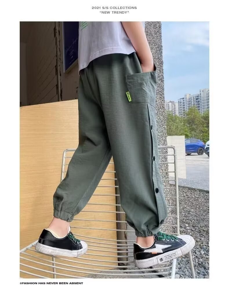 童装潮流韩版九分裤子夏季宽松直筒束脚工装裤男童ins冰丝速干裤