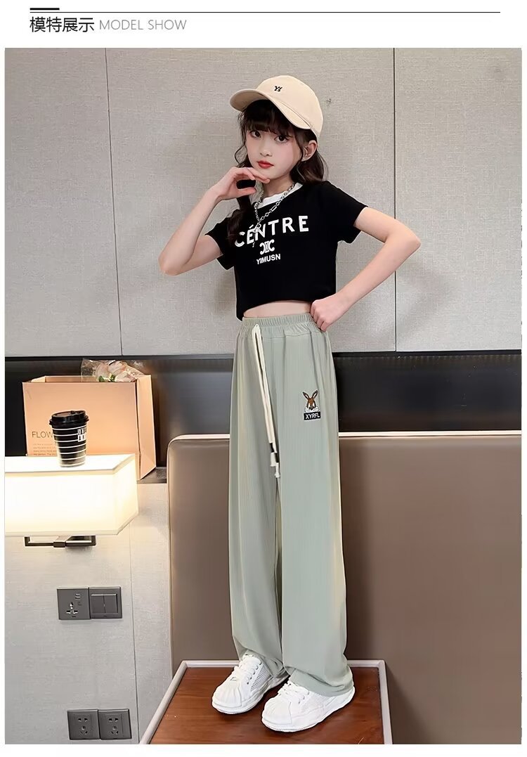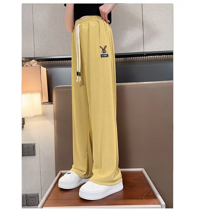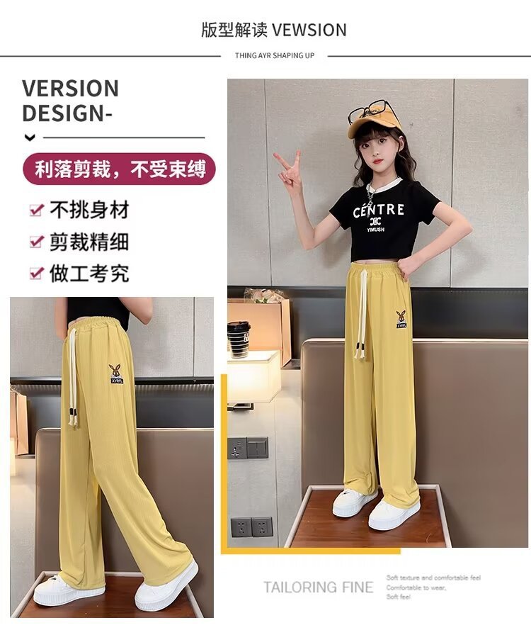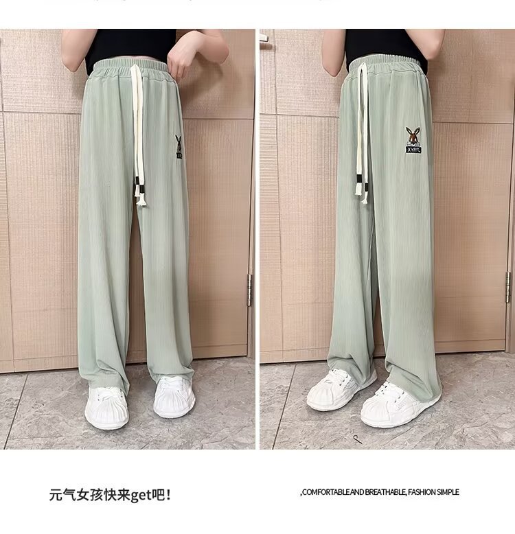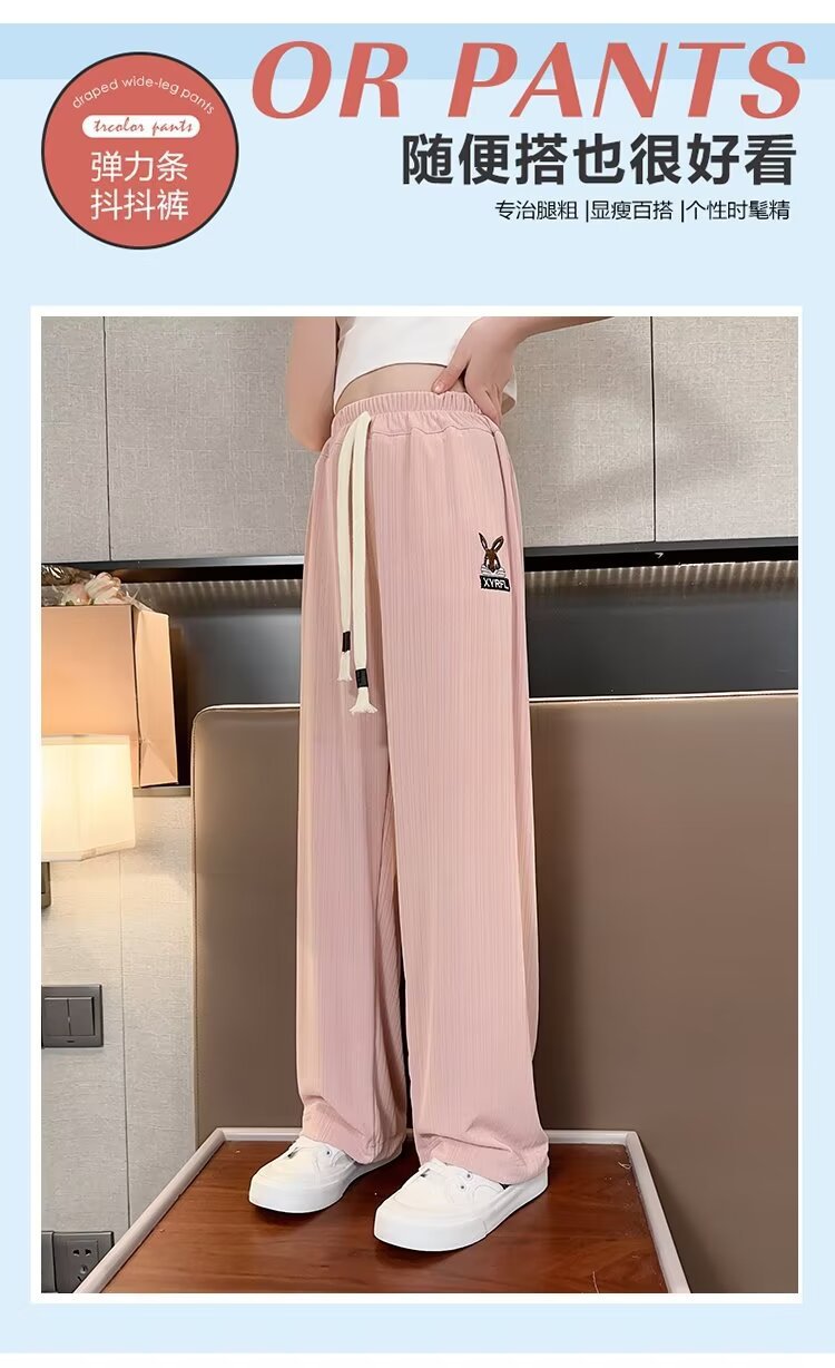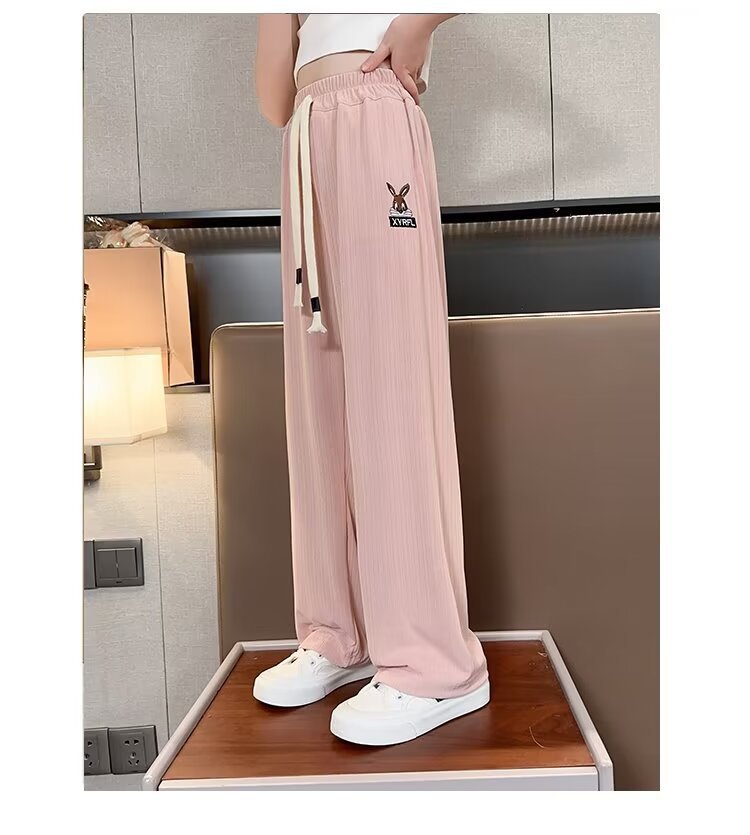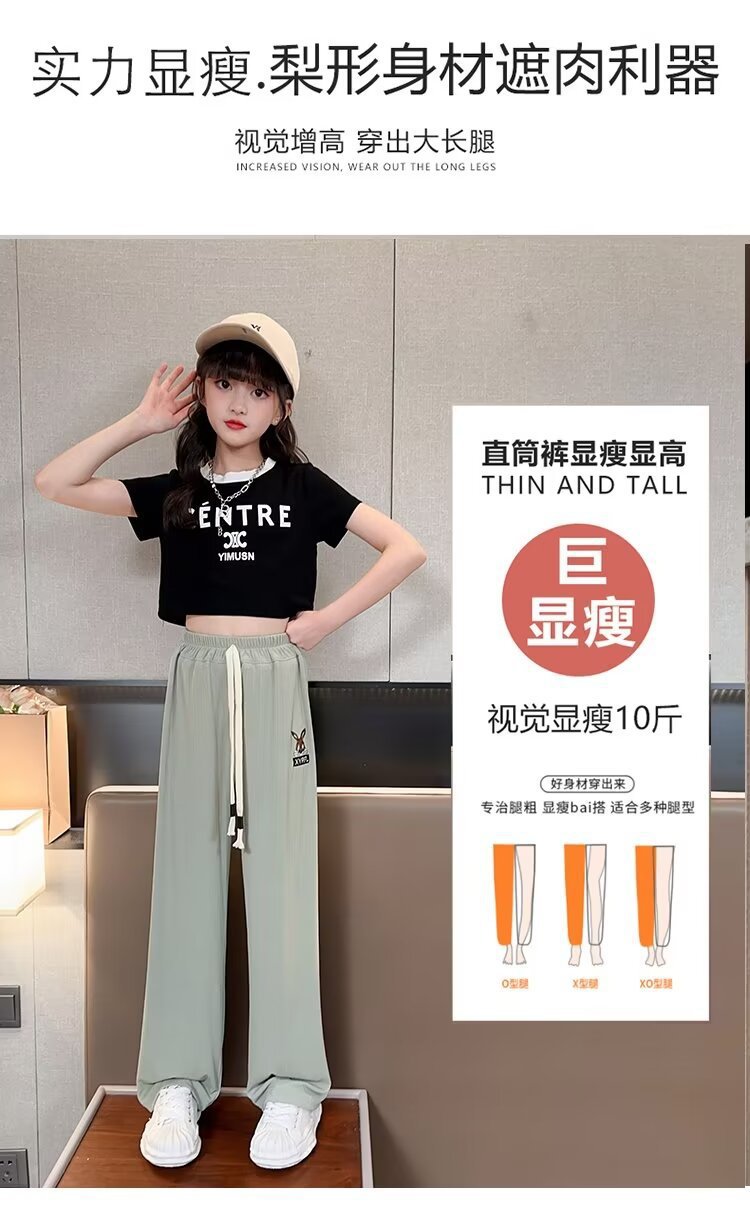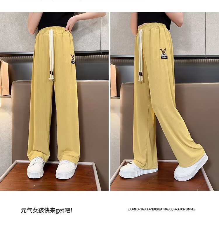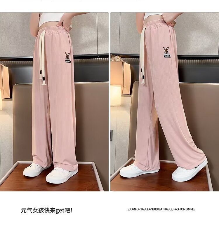 女童冰丝防蚊裤夏季新款中大童韩版洋气宽松阔腿直筒休闲长裤