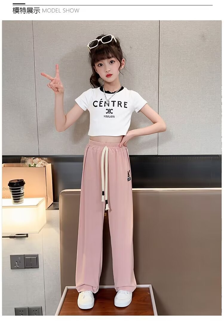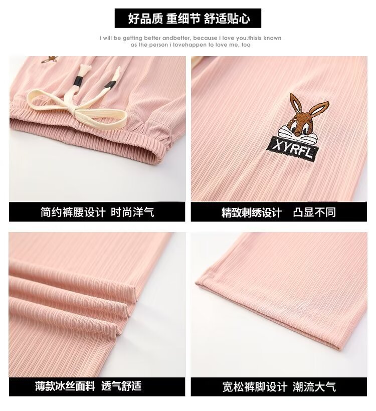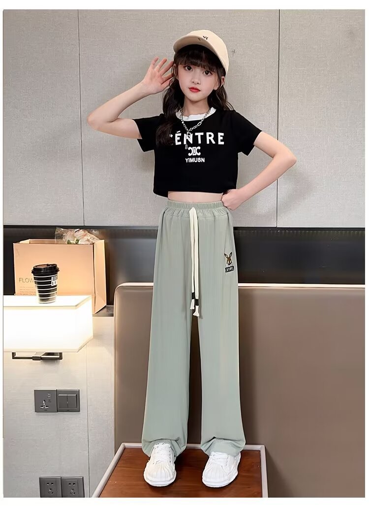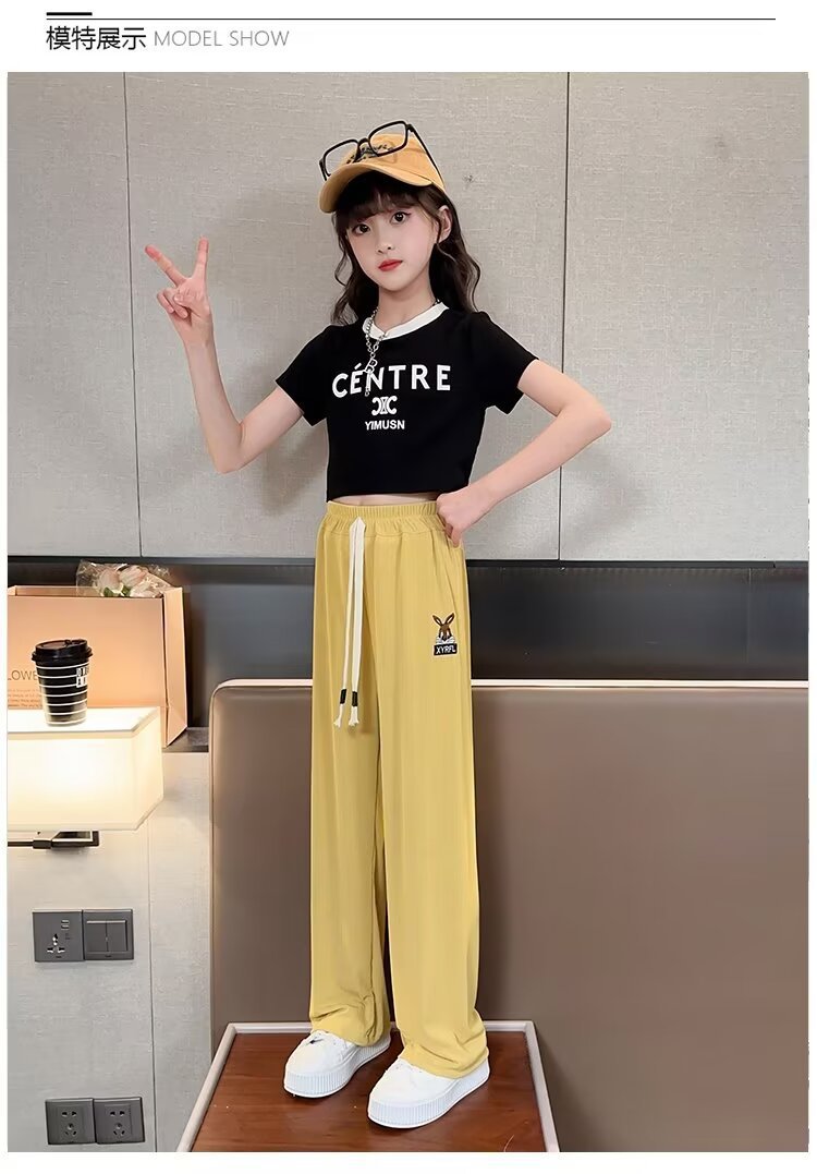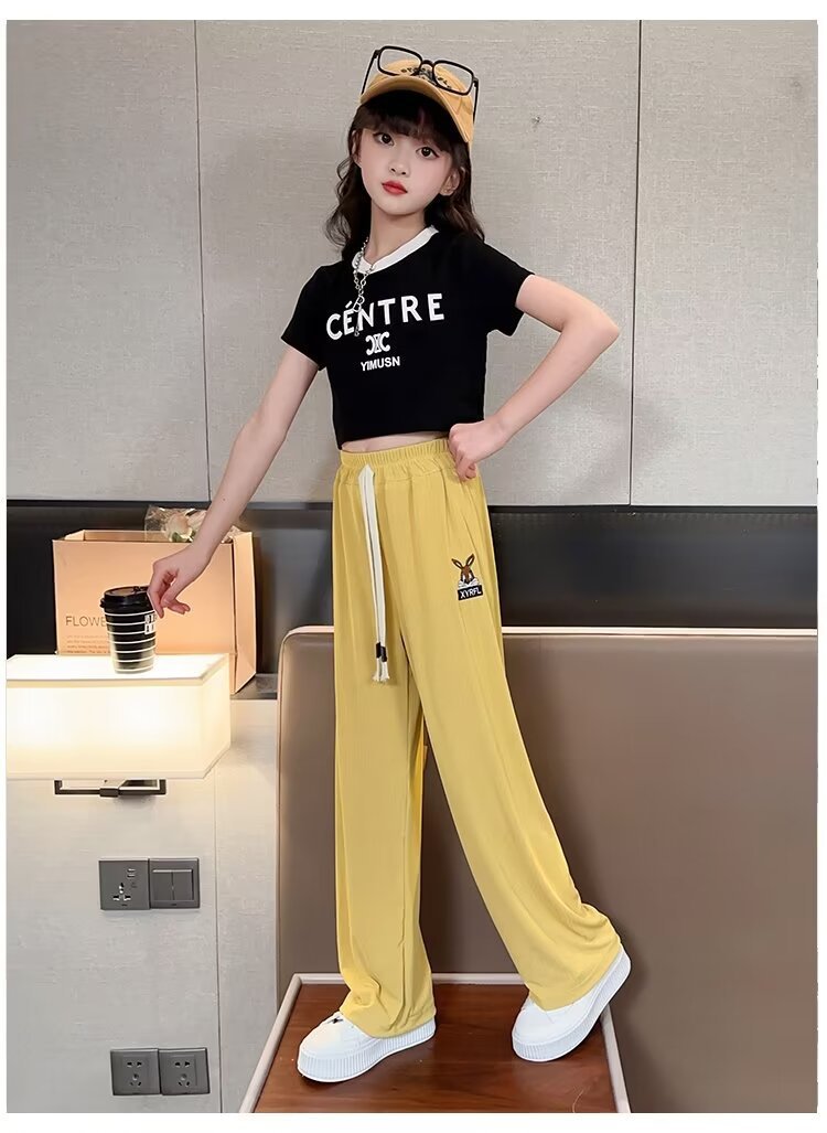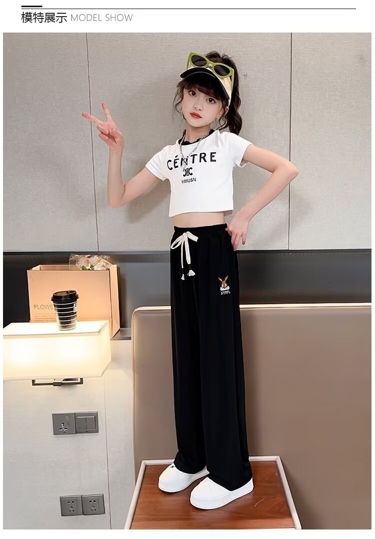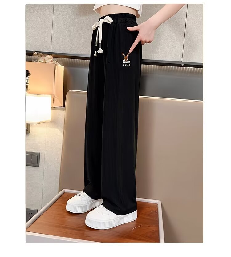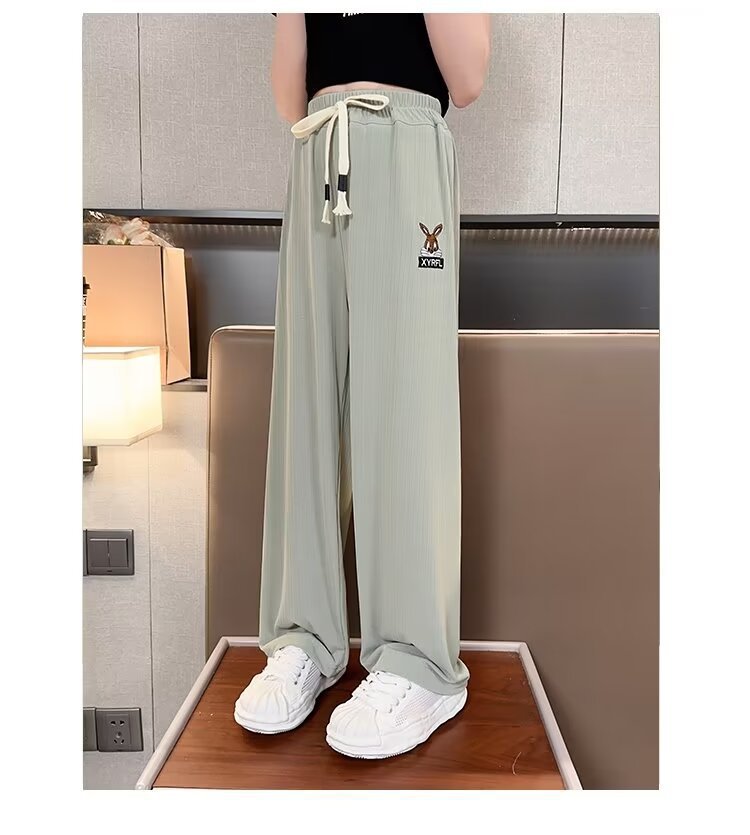 女童冰丝防蚊裤夏季新款中大童韩版洋气宽松阔腿直筒休闲长裤
