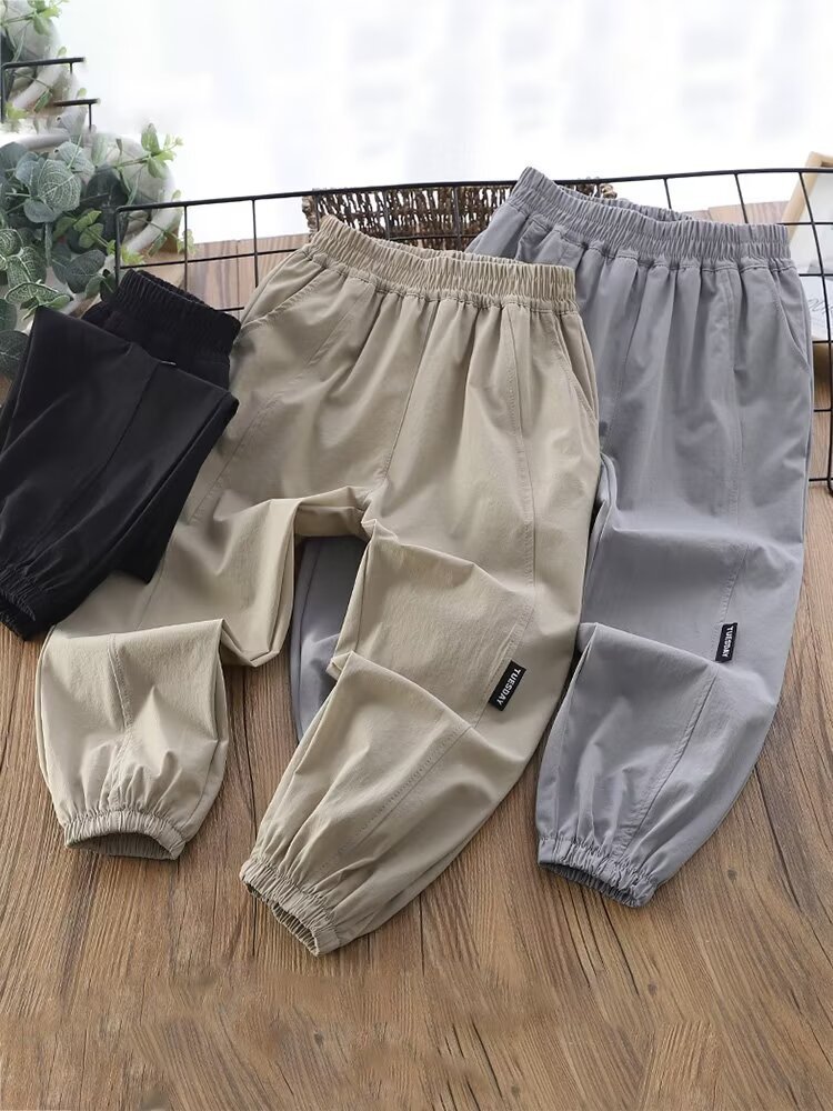 童装户外露营休闲裤港风男童新款夏季冰丝裤子运动伞兵裤九分裤潮