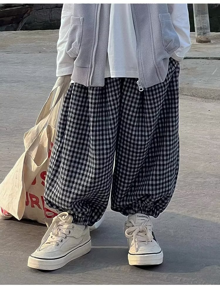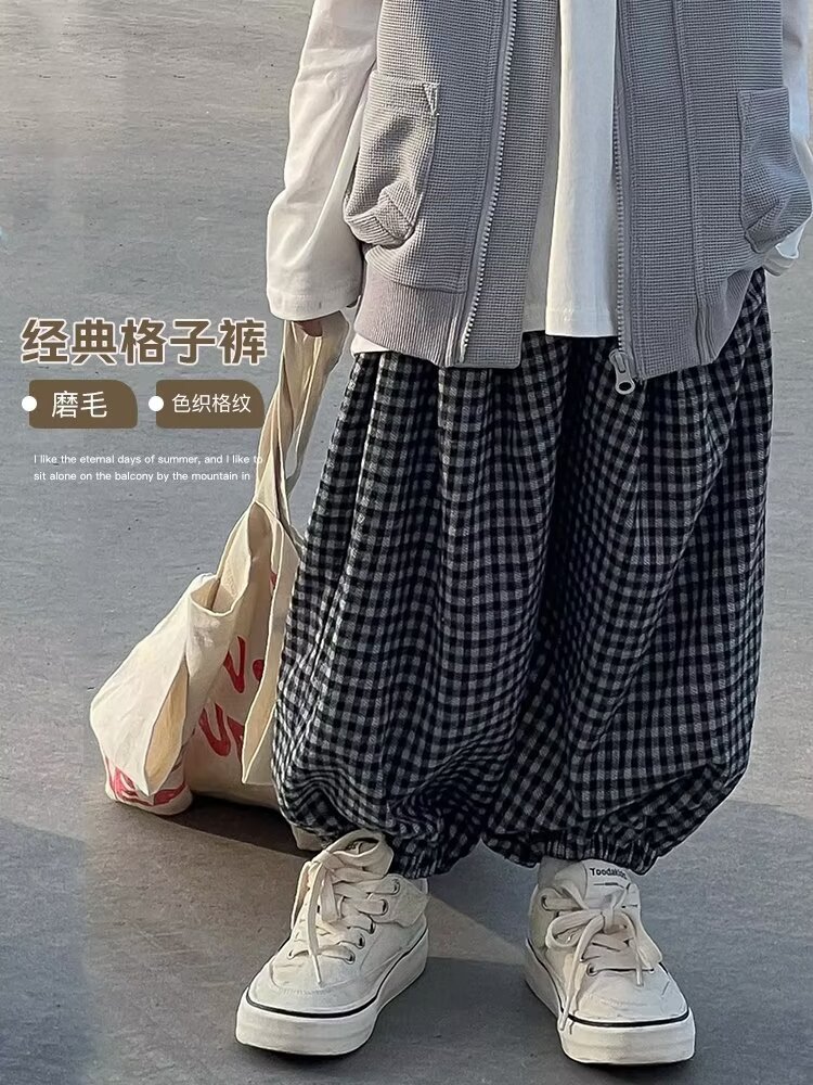 童装日系格子裤子新款春季男女童宽松休闲懒散风束脚裤防蚊裤