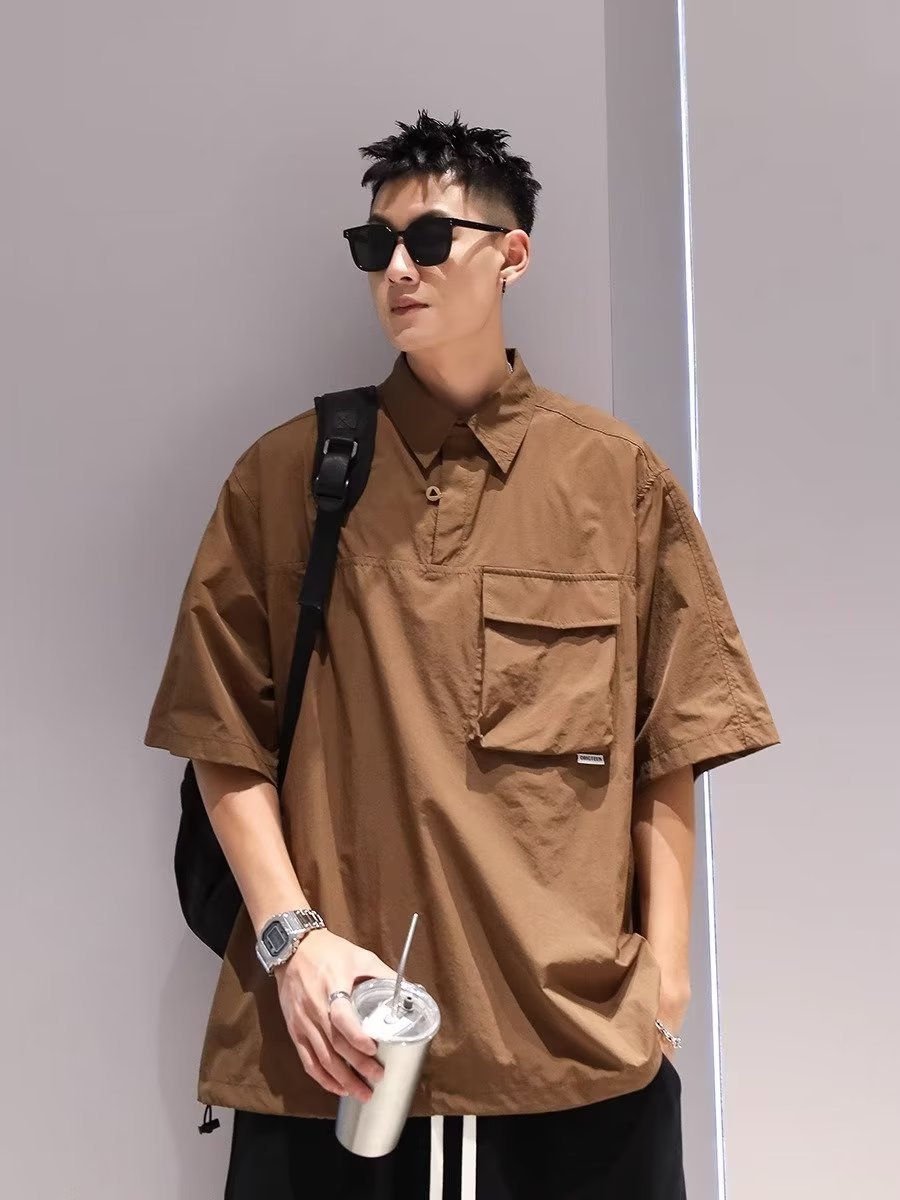 美式复古痞帅潮牌T恤男夏季设计感翻领POLO衫简约百搭短袖