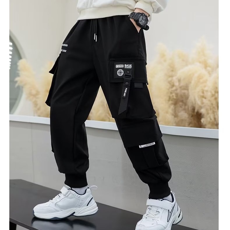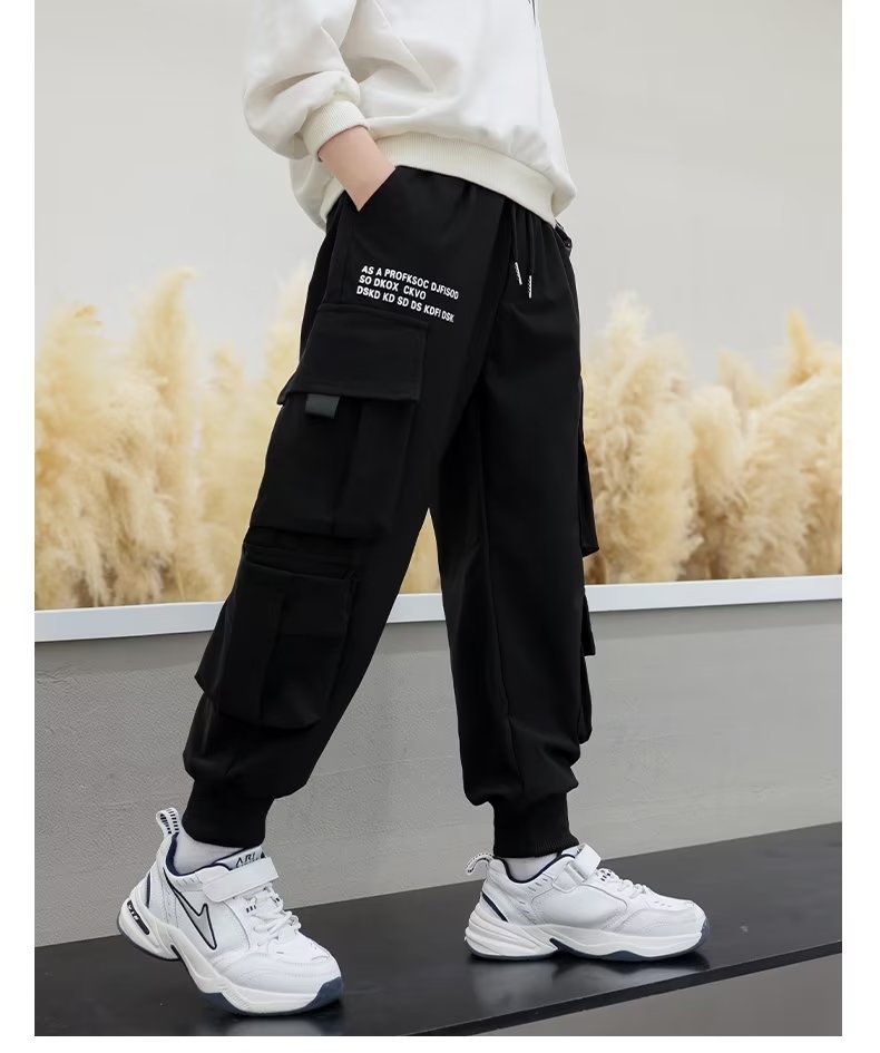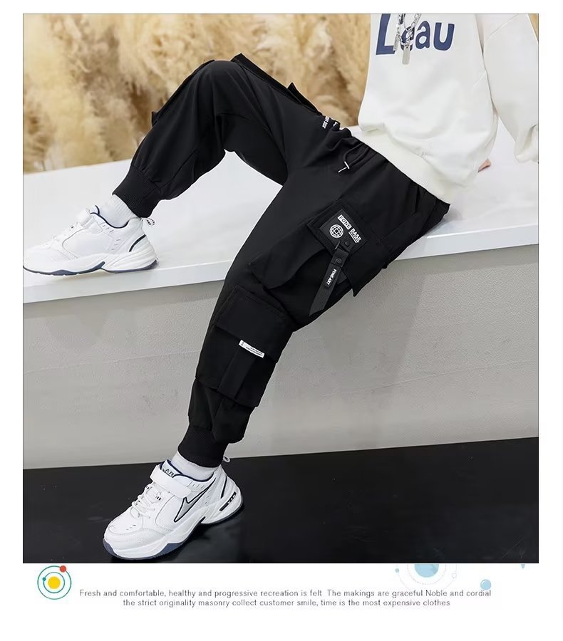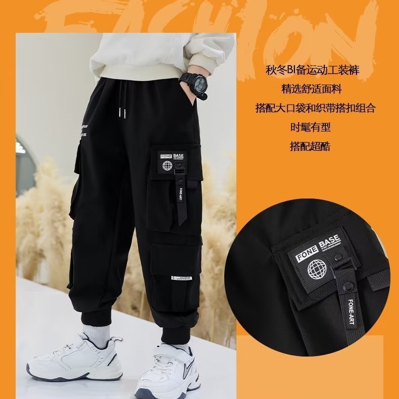 男童夏季炸街纯棉工装裤新款儿童束脚休闲长裤多口袋洋气卫裤