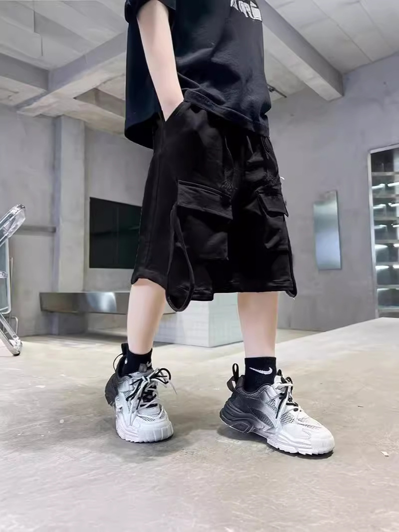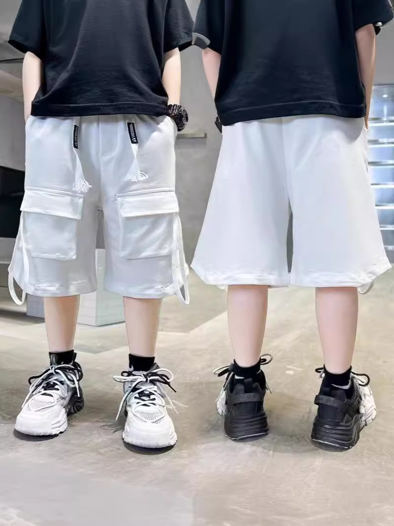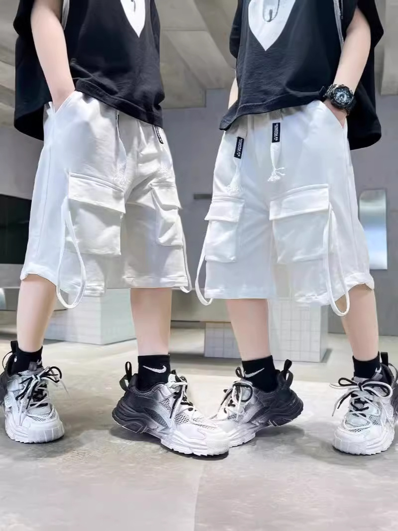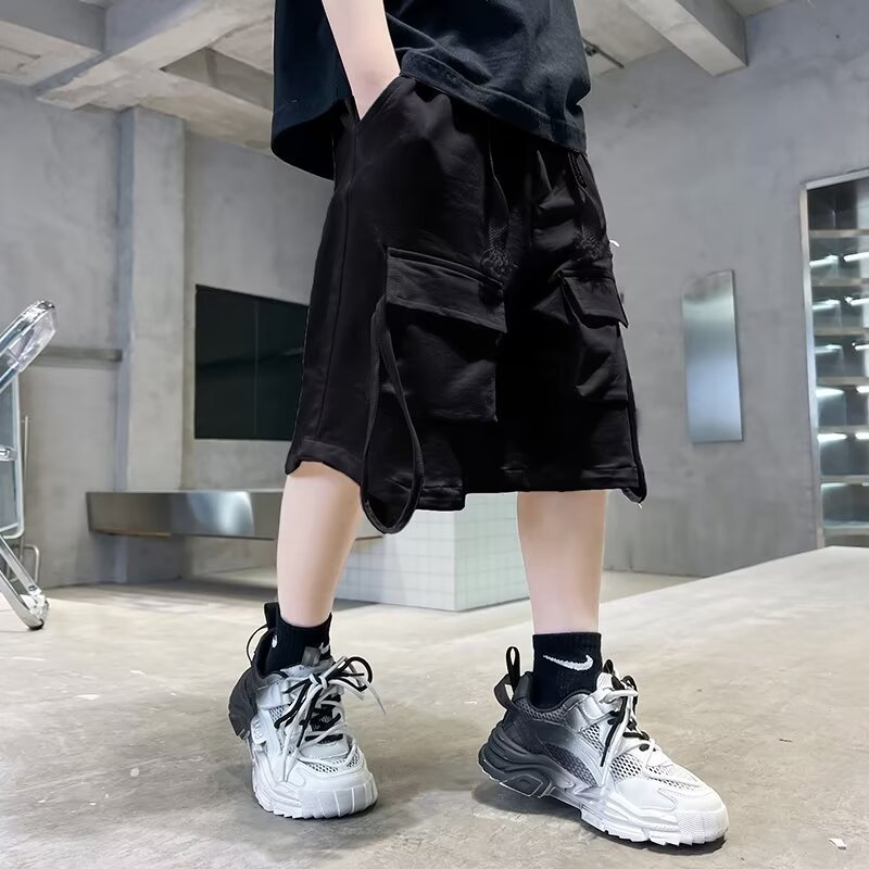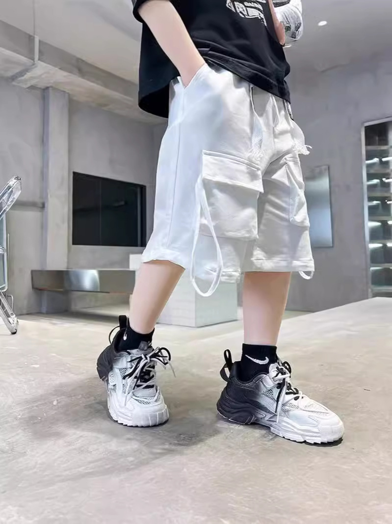 港风日系ins潮流复古日系百搭宽松直筒工装五分裤休闲裤男童