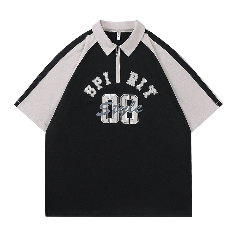 男士短袖POLO衫韩版休闲撞色拼接新款宽松五分袖潮流翻领半袖T恤