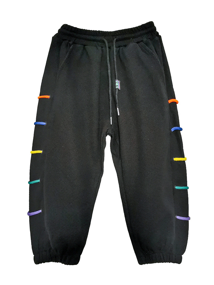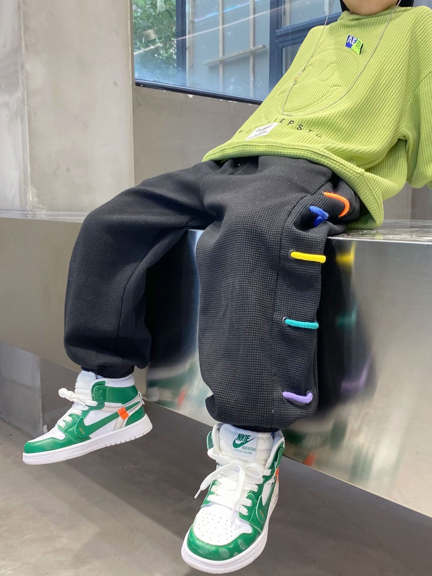 潮流华夫格长裤童装百搭文艺休闲日系宽松腰春秋裤子男孩新款裤字