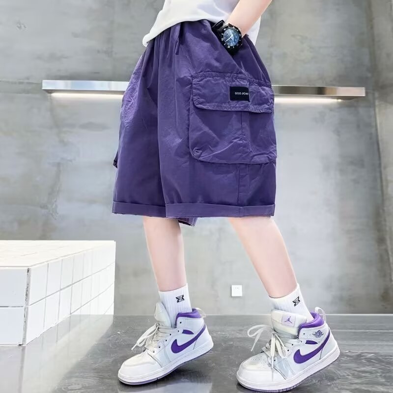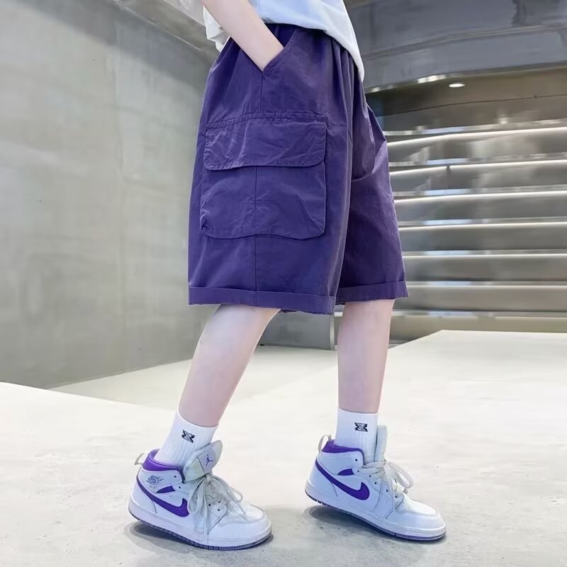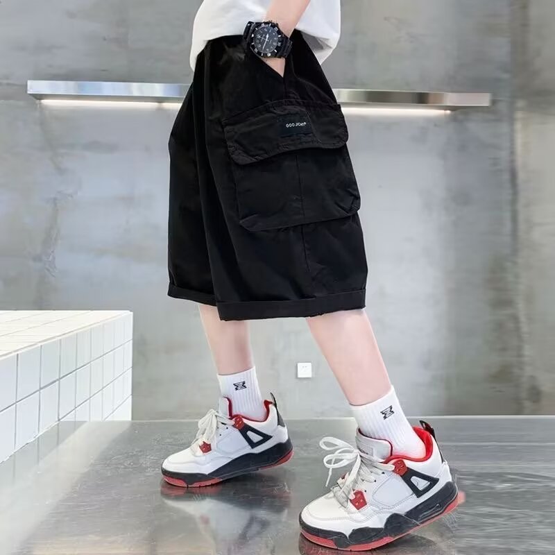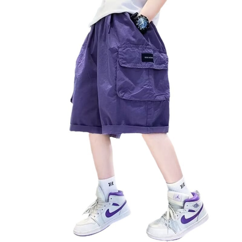 童装夏季纯色短裤撞色多口袋工装裤子男童休闲裤帅气裤子沙滩裤潮