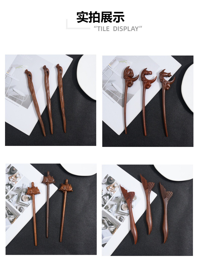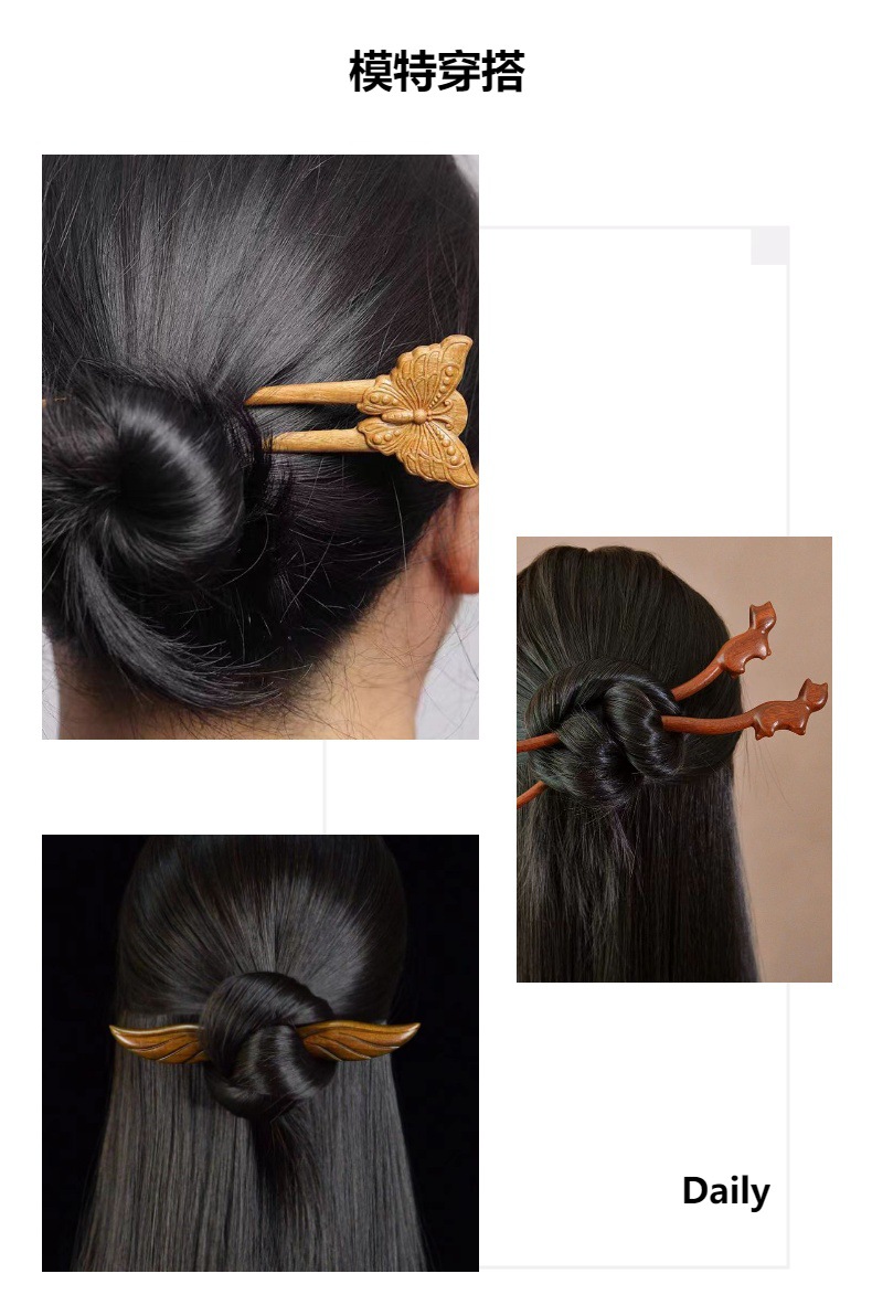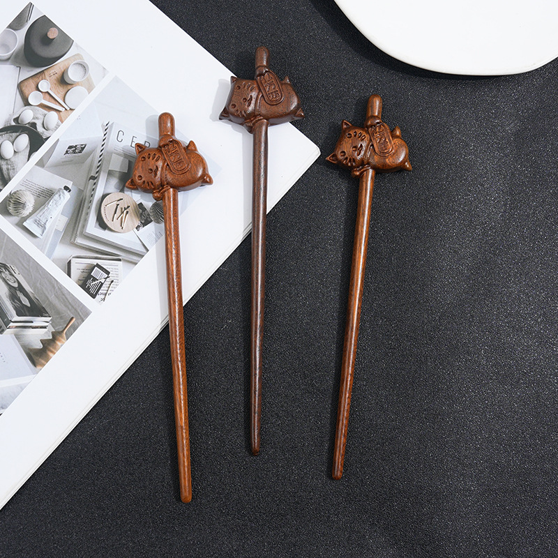 檀木发簪女汉服簪子可爱盘发木簪