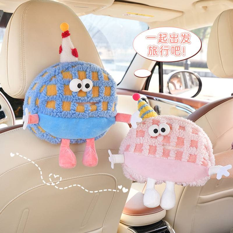 汽车纸巾盒 毛绒多巴胺小怪兽车载纸巾抽 萌趣卡通车用椅背抽纸盒