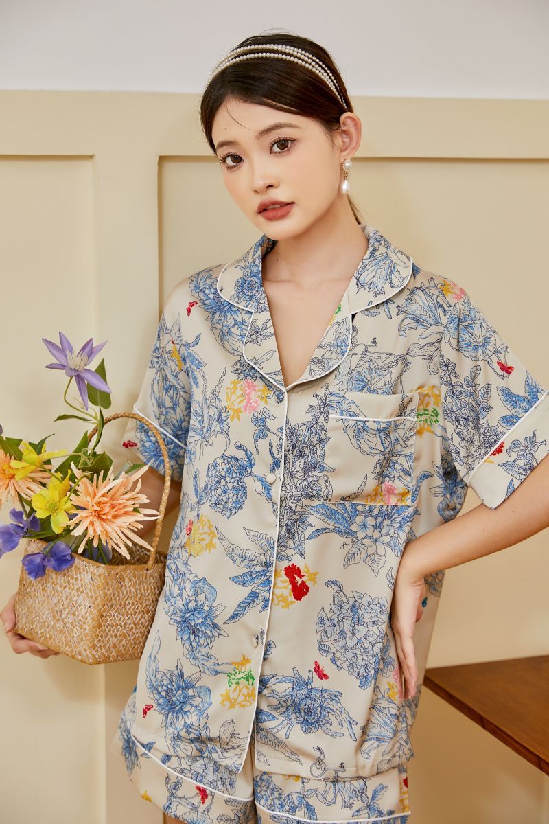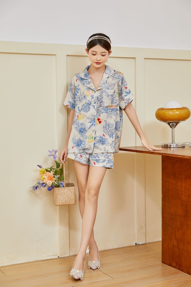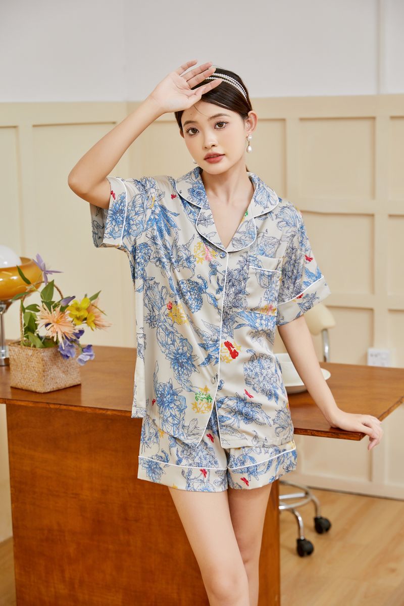 轻奢高定春秋季丝绸冰丝睡衣女莫奈花高级感印花夏季家居服套装女