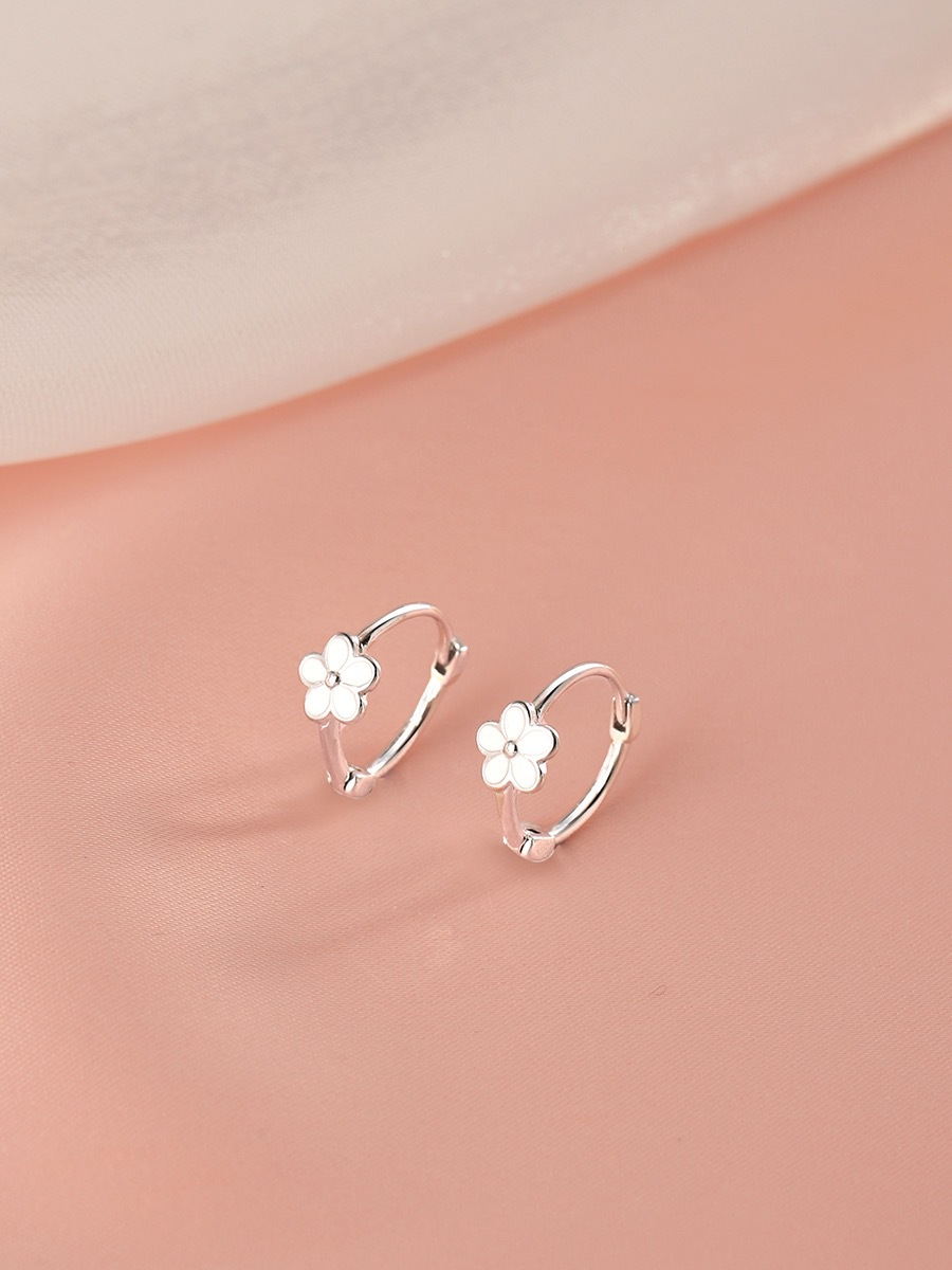 S999足银小花耳扣女小众设计高级感 耳环圈新款潮养耳饰品