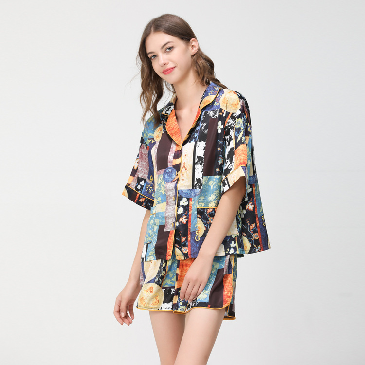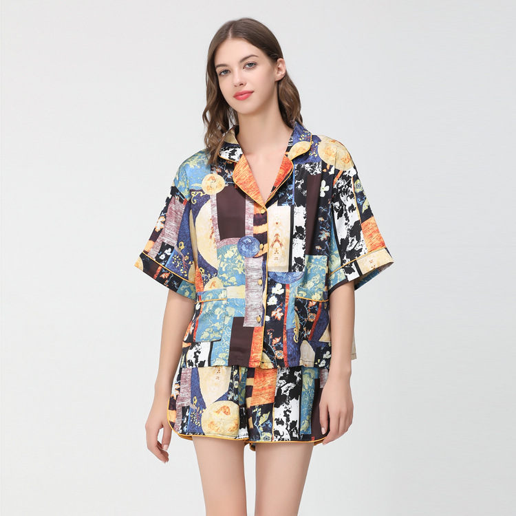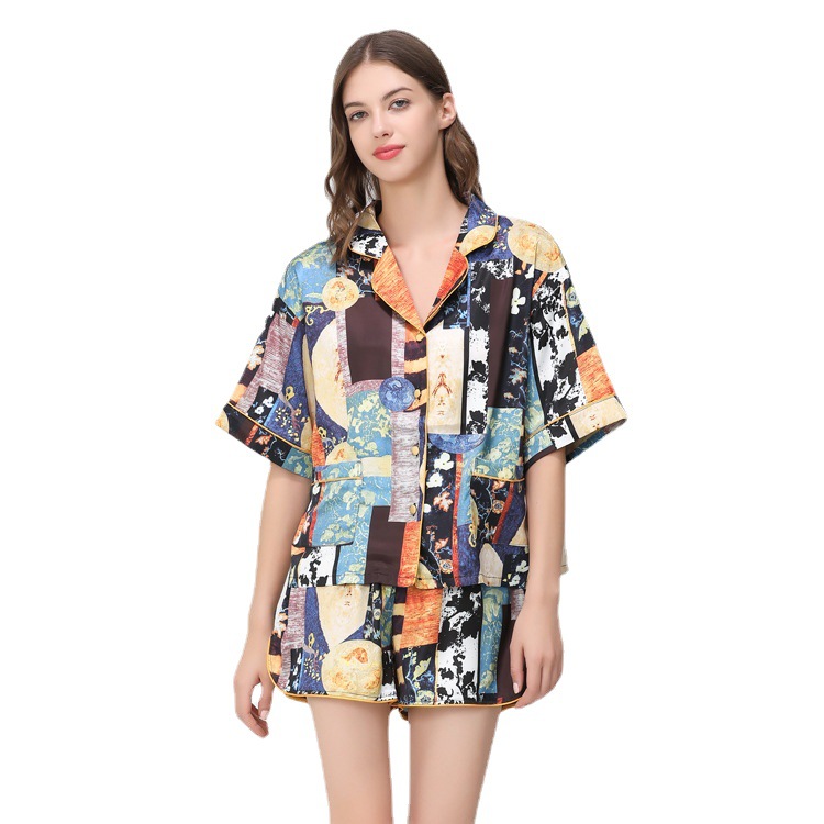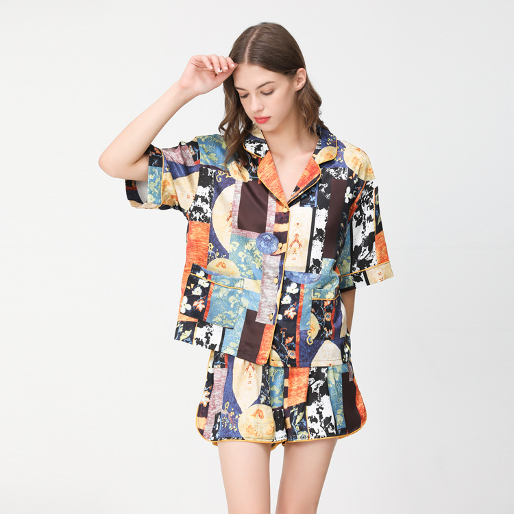 冰丝睡衣女夏短袖短裤两件套夏季薄款印花可外穿家居服仿套装