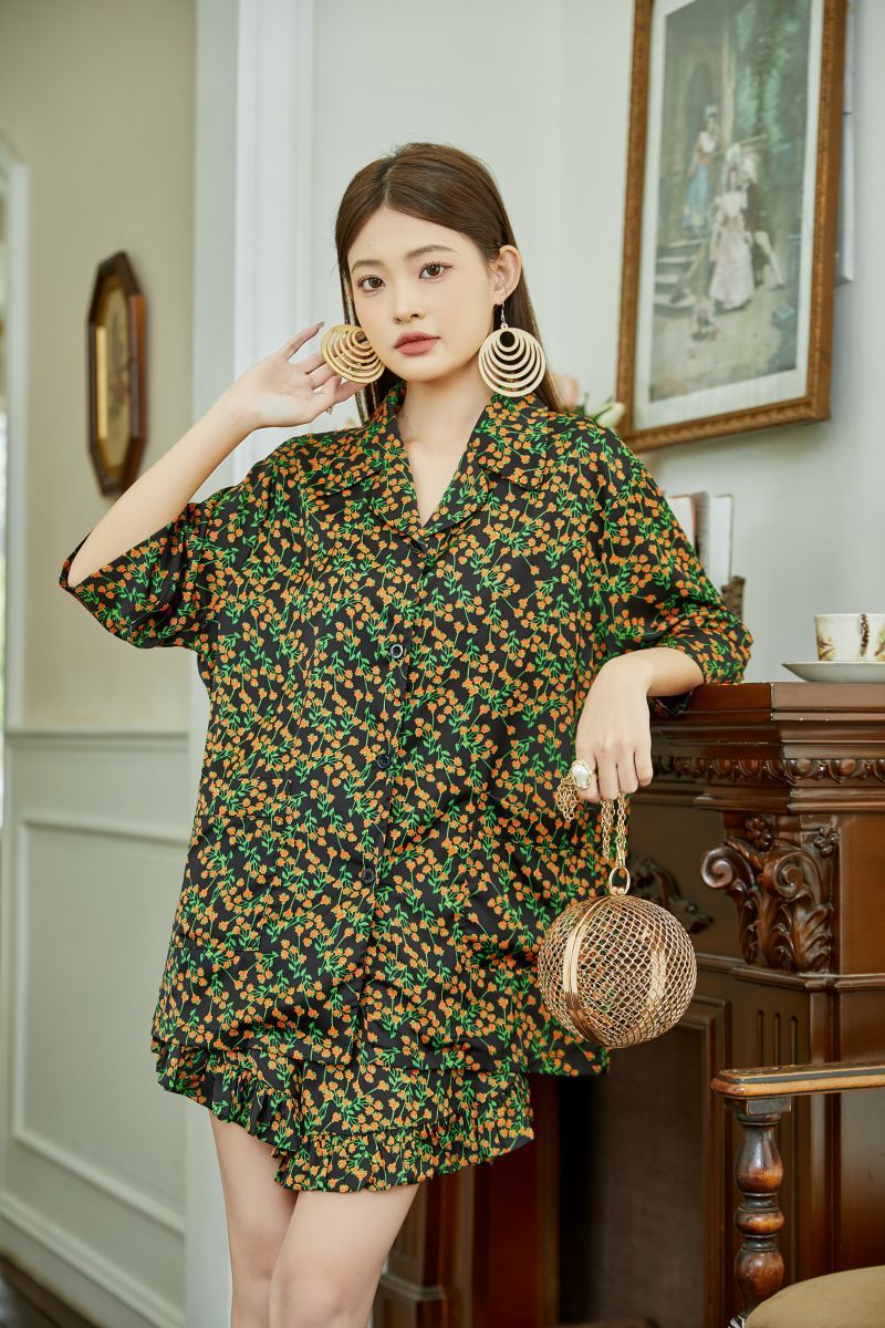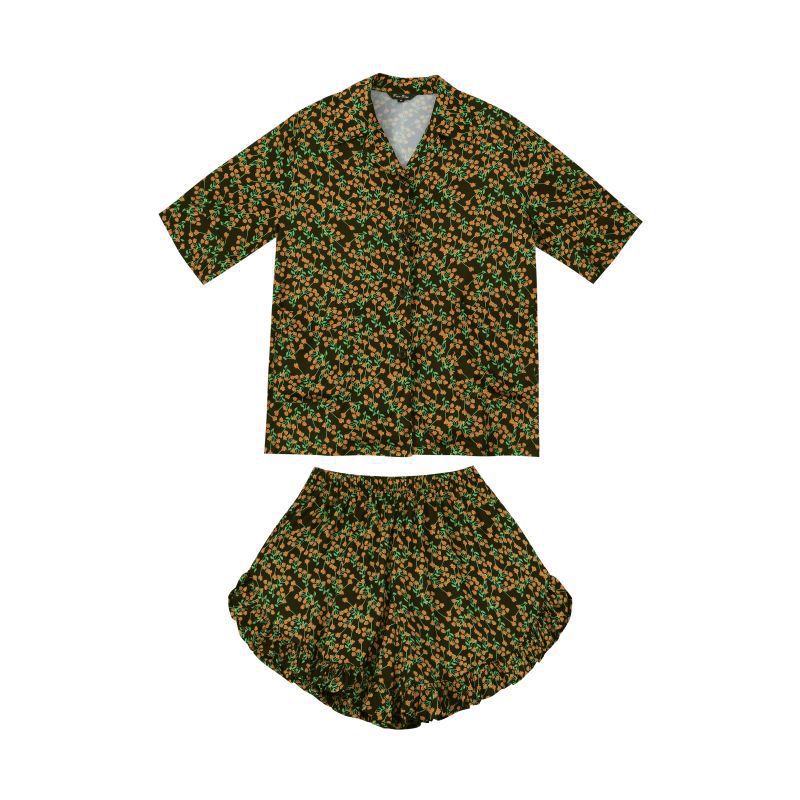 小碎花高级感冰丝睡衣女夏季新款薄款短袖短裤两件套家居服