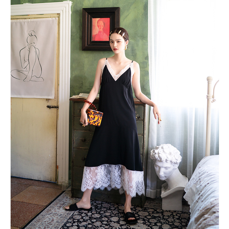春夏款高级感性感公主风吊带蕾丝冰丝睡衣睡裙晨袍家居服女
