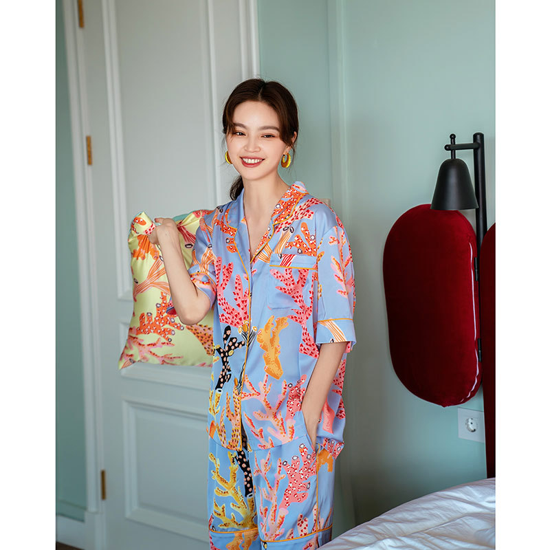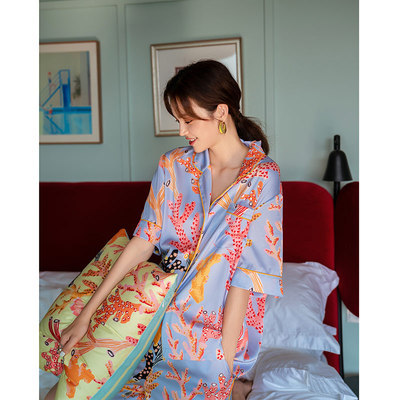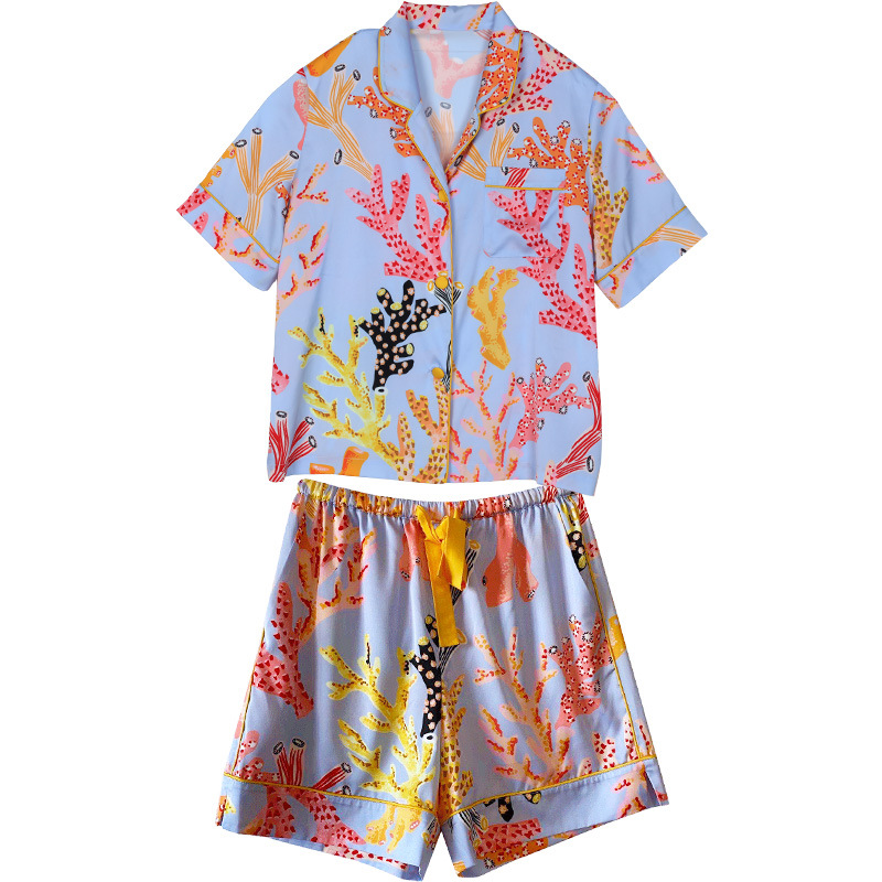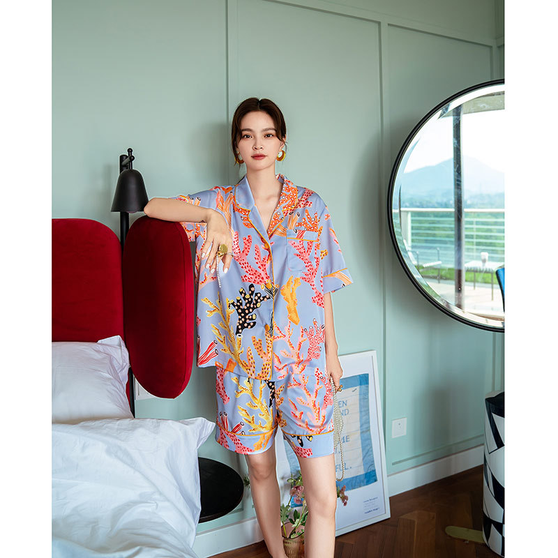 珊瑚礁冰丝睡衣女夏季薄款短袖短裤两件套装家居服可出门外穿休闲