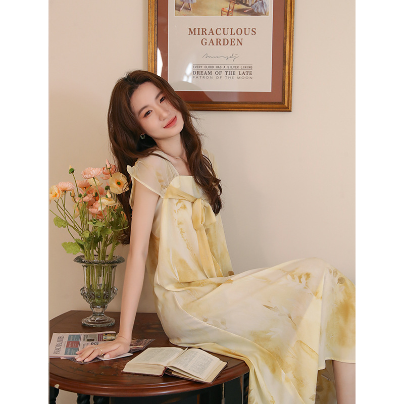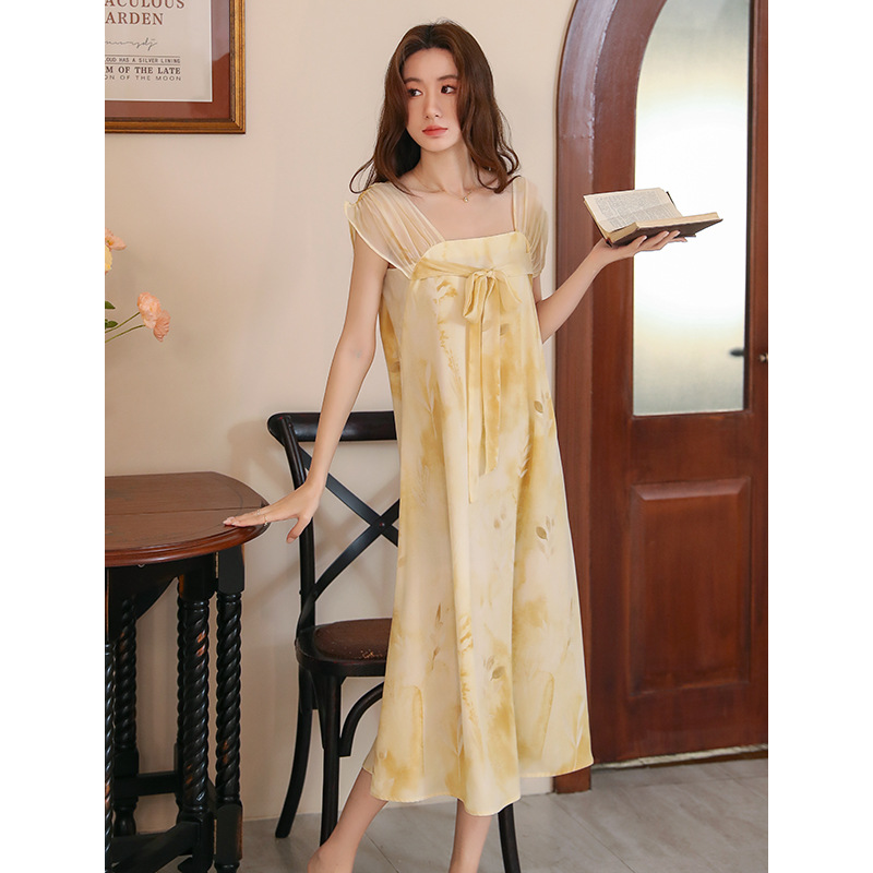冰丝吊带睡裙女夏季新款薄款仿真丝绸睡衣裙长款高级感家居服外穿
