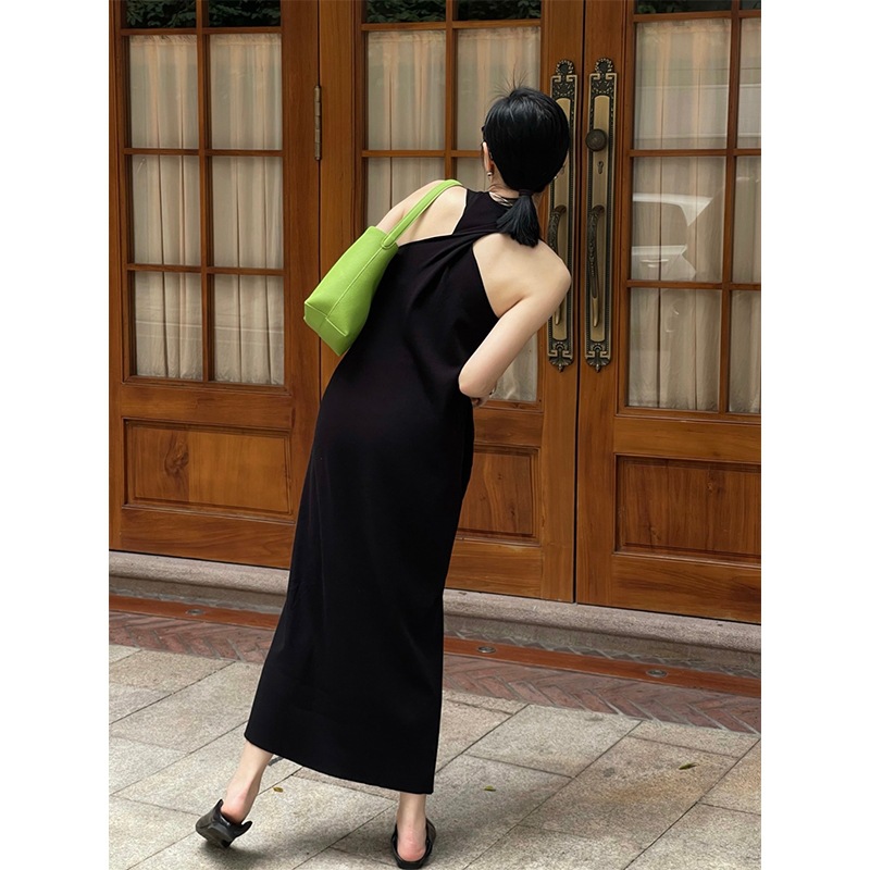 夏季法式设计感露背扭结无袖连衣裙女小众气质高级感显瘦长裙