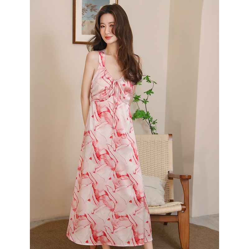 冰丝吊带睡裙女夏季性感带胸垫睡衣裙长款高级感薄款家居服可外穿