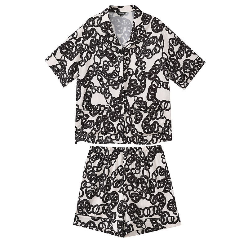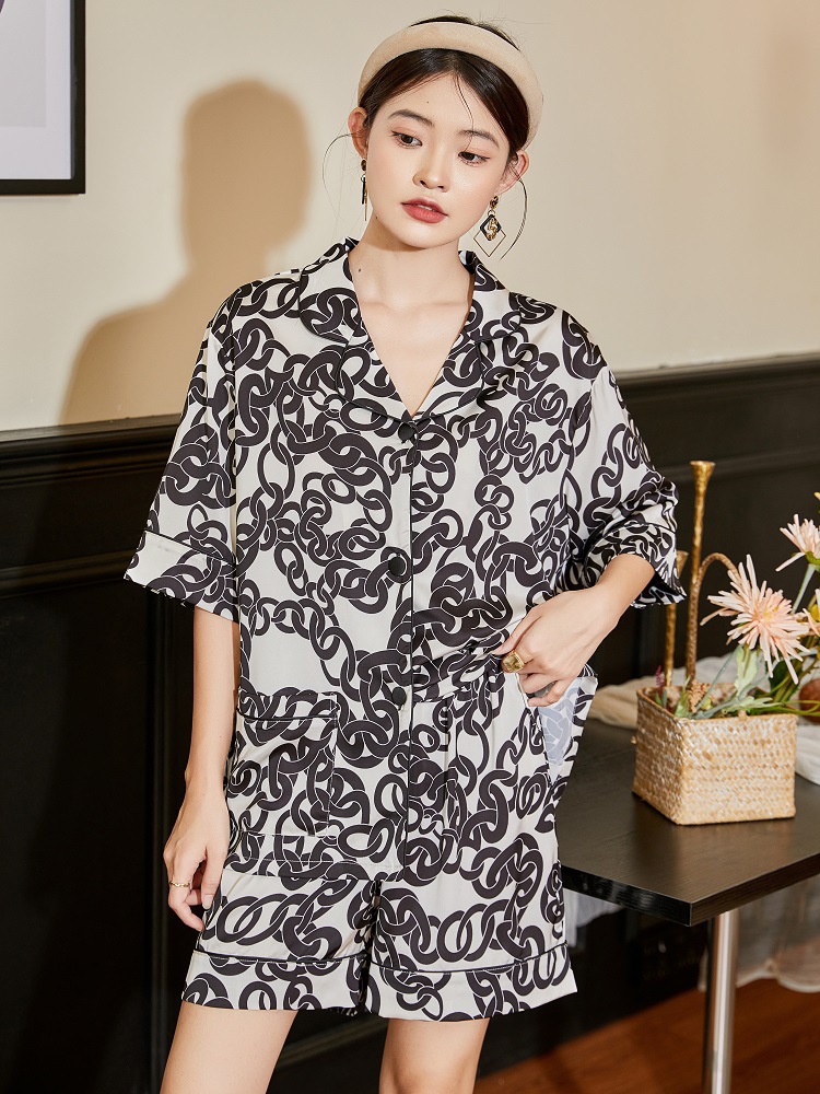 扭结印象冰丝睡衣女新款春秋短袖短裤两件套装家居服可外穿