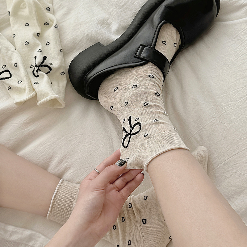 ins春夏新款女袜街头韩版卷边卡通蝴蝶结爱心中筒袜网红堆堆袜女