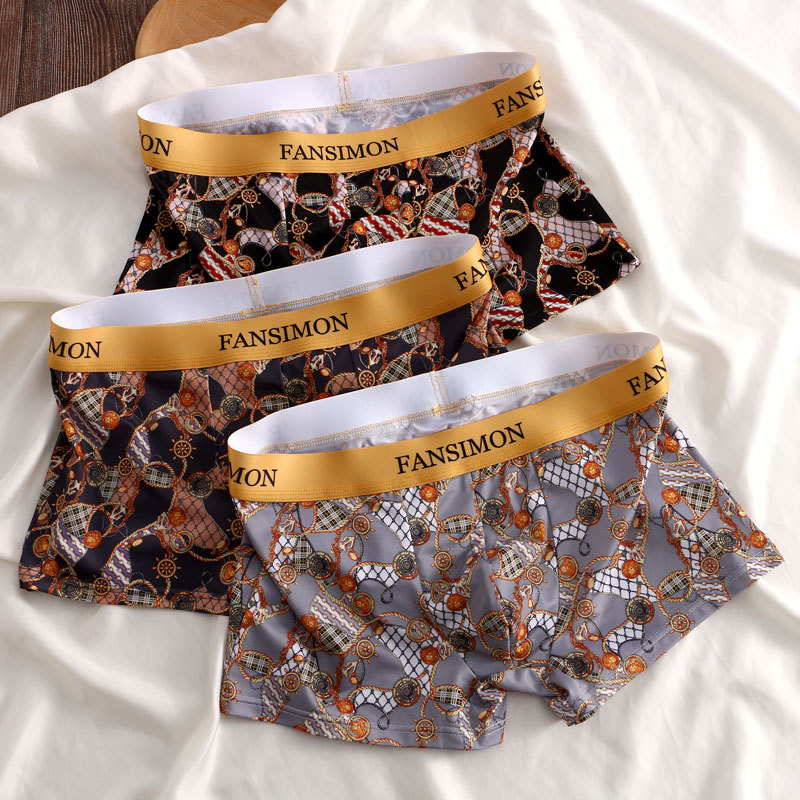 新款男士内裤冰丝男款四角裤透气潮流个性平角裤舒适柔软夏季裤衩
