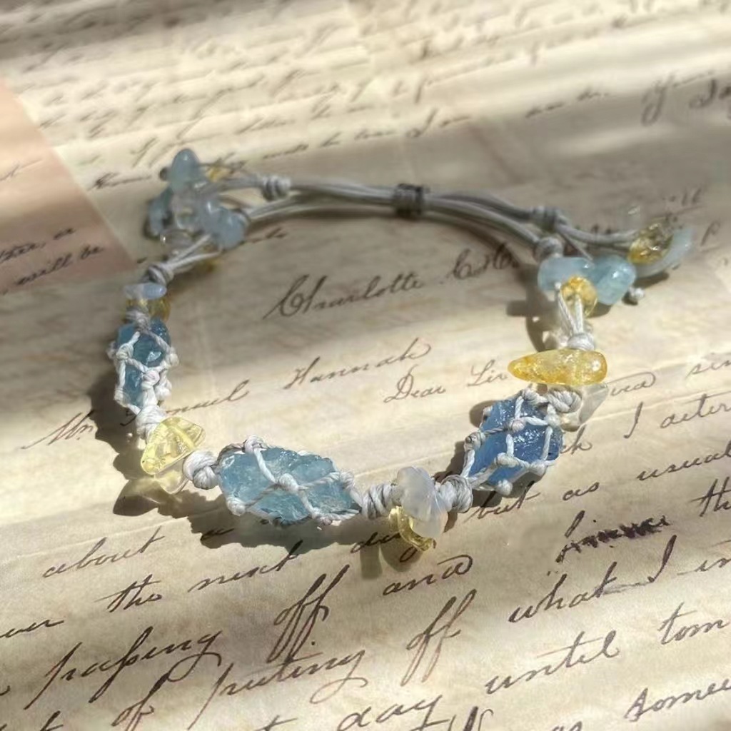macrame合成海蓝宝手绳原创高颜值闺蜜情侣小众水晶手工手链手串