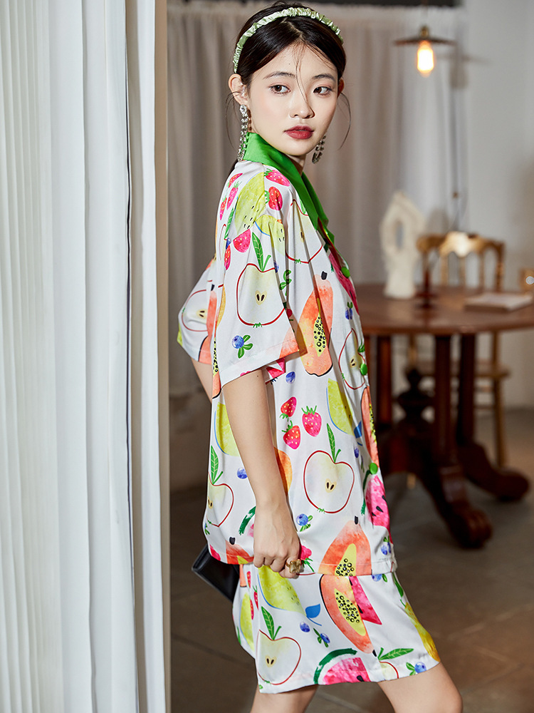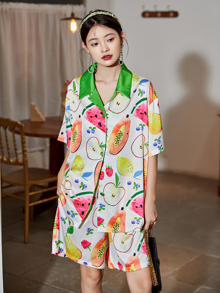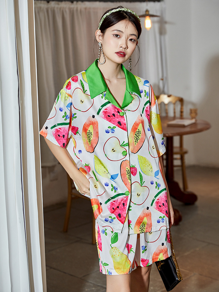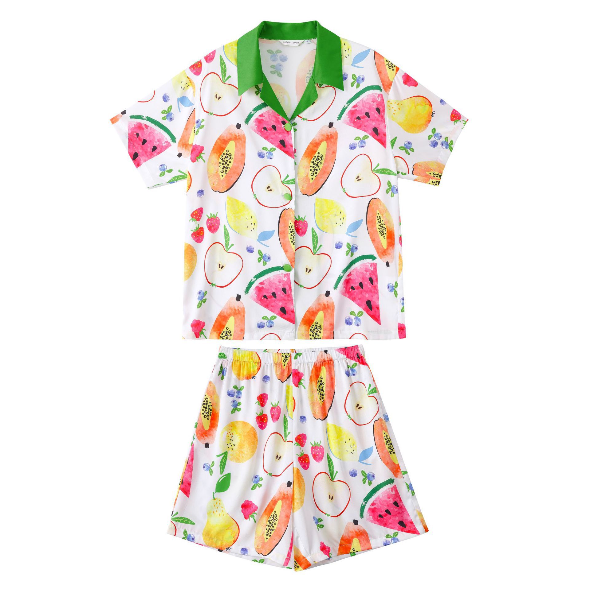夏季款迈阿密风情夏季高级感冰丝短袖短裤印花睡衣家居服套装
