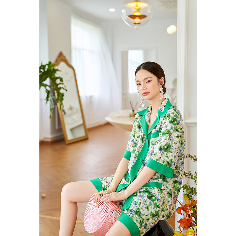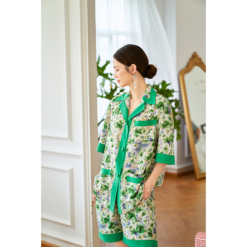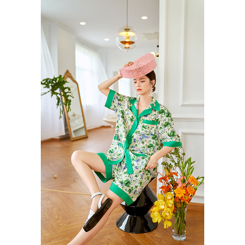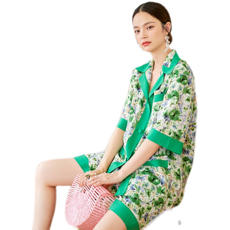 衬衫领高级感冰丝睡衣女夏新款短袖短裤两件套装家居服