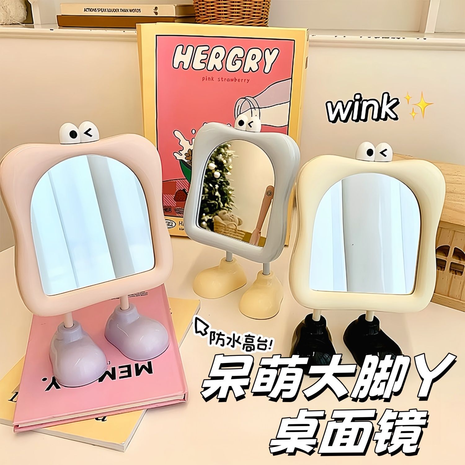 大脚丫化妆镜桌面可立学生宿舍公主镜工位梳妆台式迷你可爱小镜子
